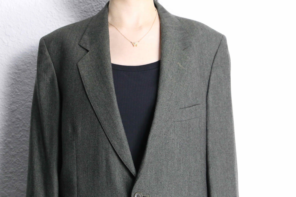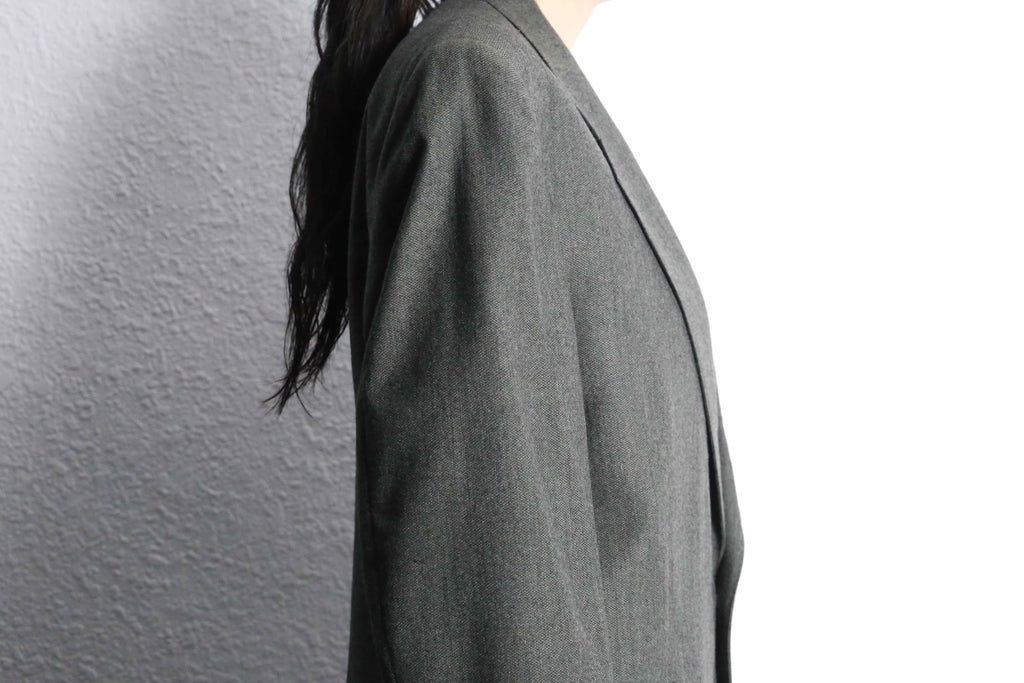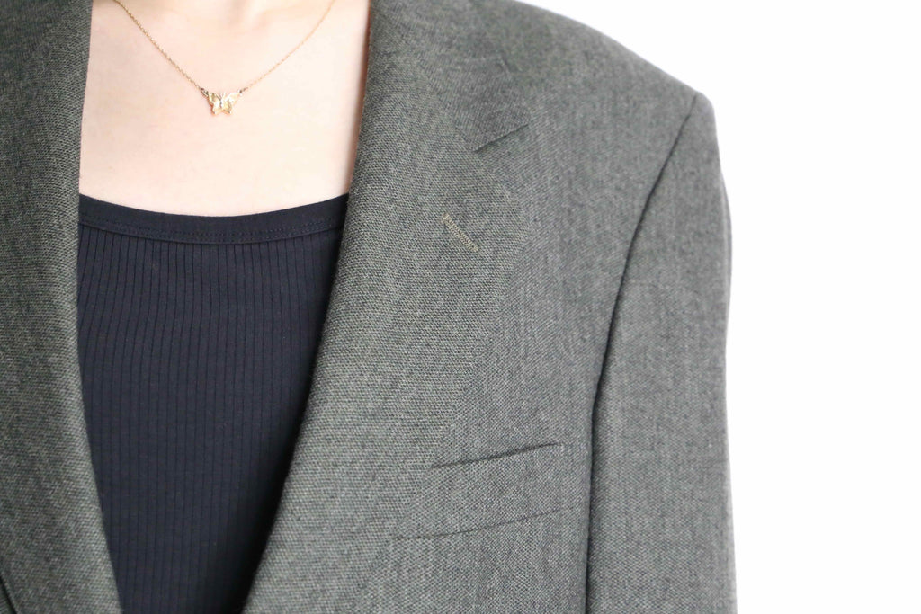 深いグレー単色の色味が上品に表現されている洗練されたテーラードジャケット。