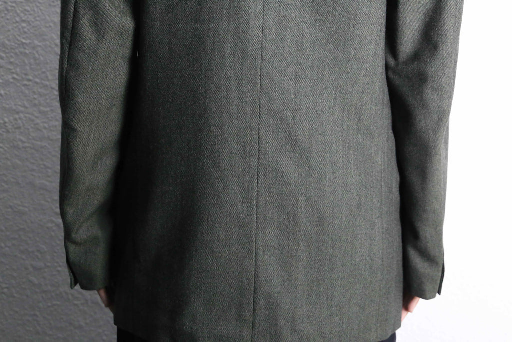 ビジュアルからでも伝わる上質なウールの素材感。かなりフォーマルな印象が強いアイテムかと思いますが、わざと着崩したスタイリングをするのも良いと思います。ドライバーズニットや柄シャツなどと合わせても面白いかと。