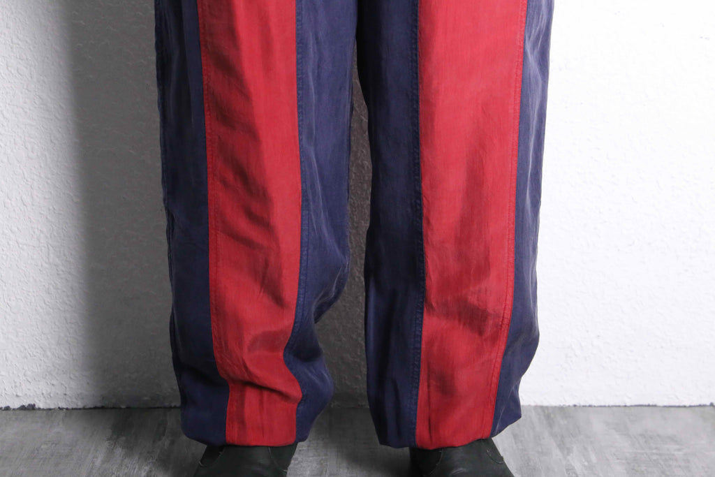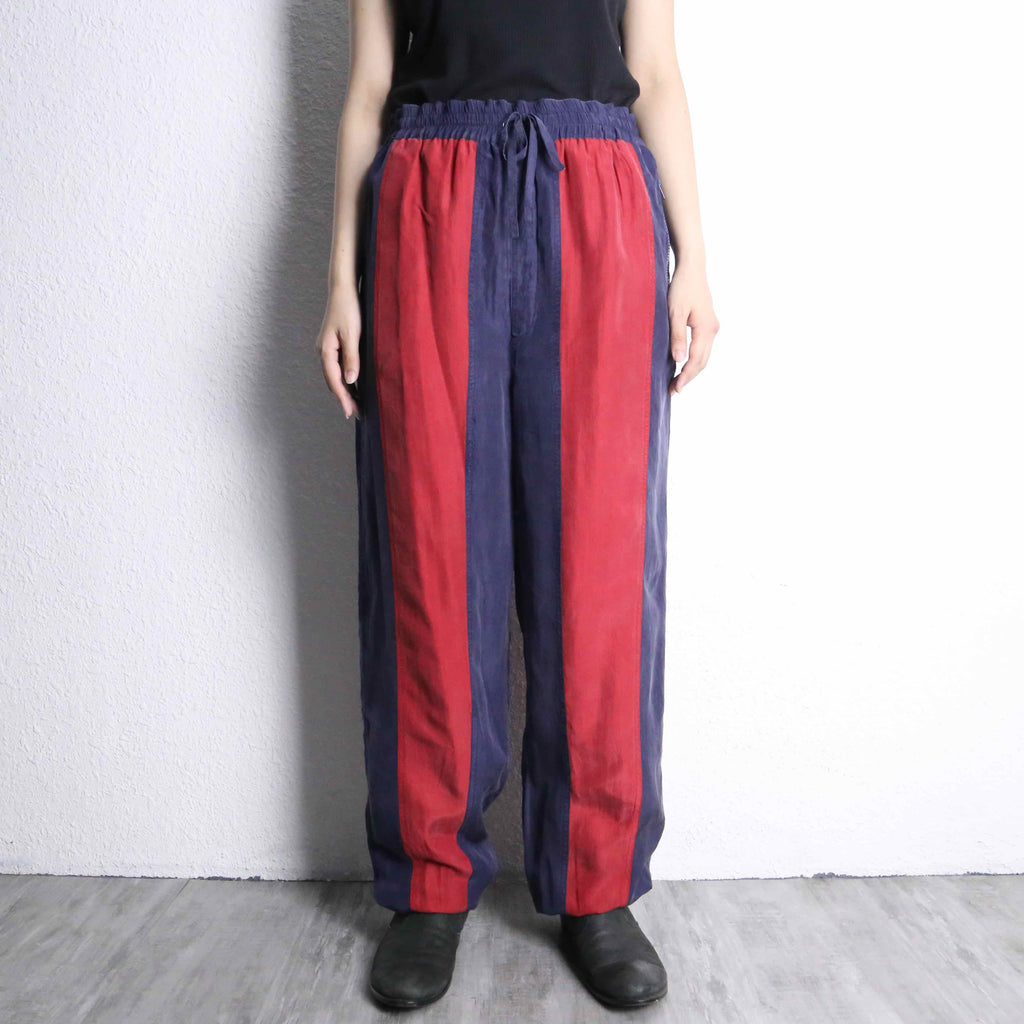 大判なラインデザインが目を奪うド派手なシルクパンツ。