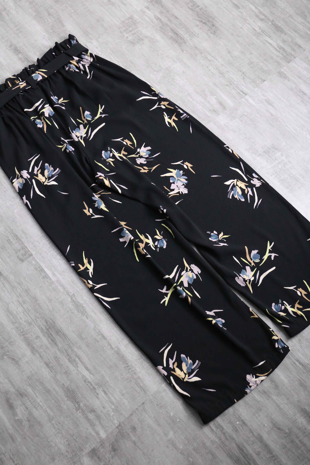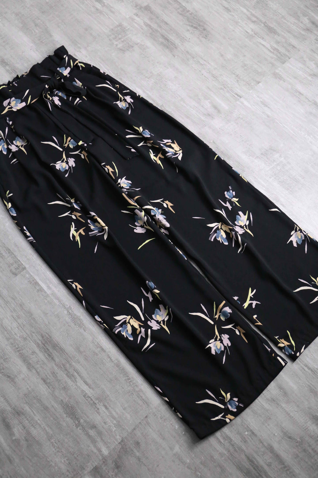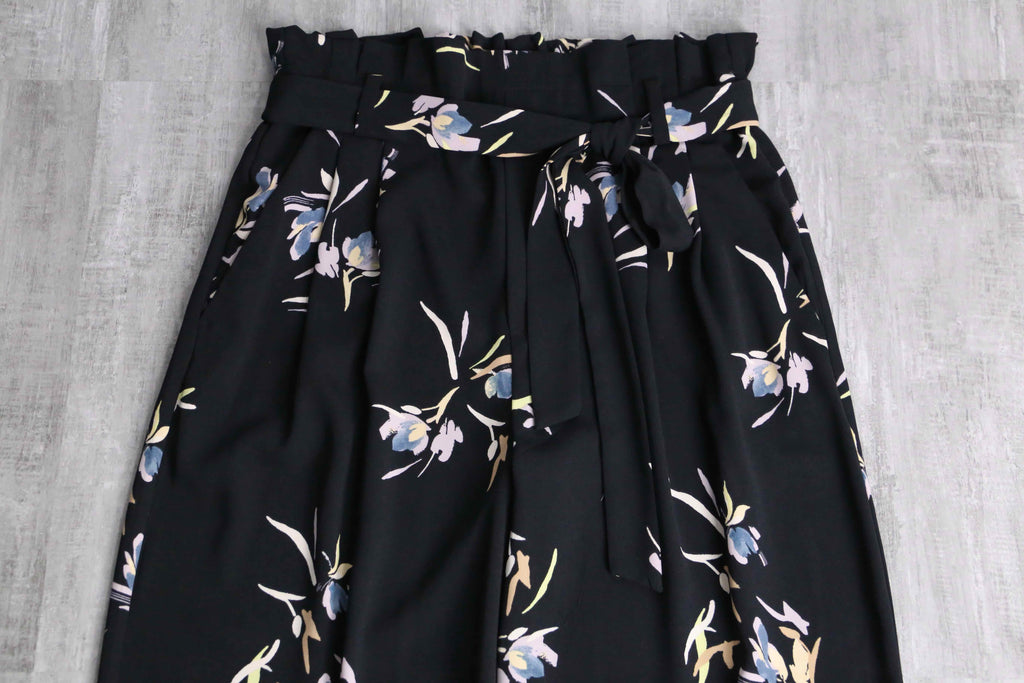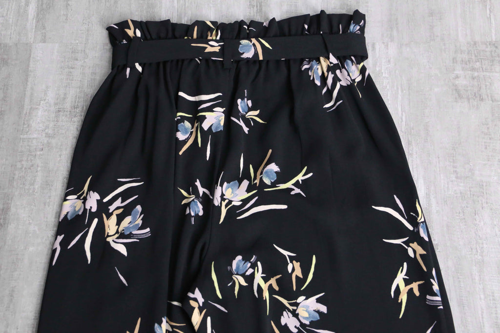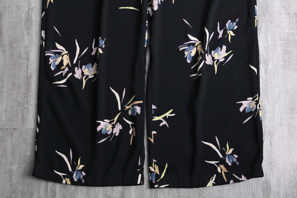 pale flower pattern black wide pants