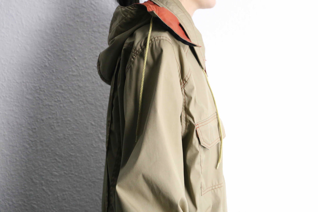 STORMSHEDは雨風や雪に強い"STORMSHED FABRIC"を使用した高性能ジャケット。セパレートタイプのフードは立てるとドローコードが付いておりハイネックのようにも変形可能。その他ダブルジッパー、内ポケット、スノーガード等便利な仕様が備わっています。また背面には独特のアクションプリーツが入る格好いいバックスタイルも超魅力的です。