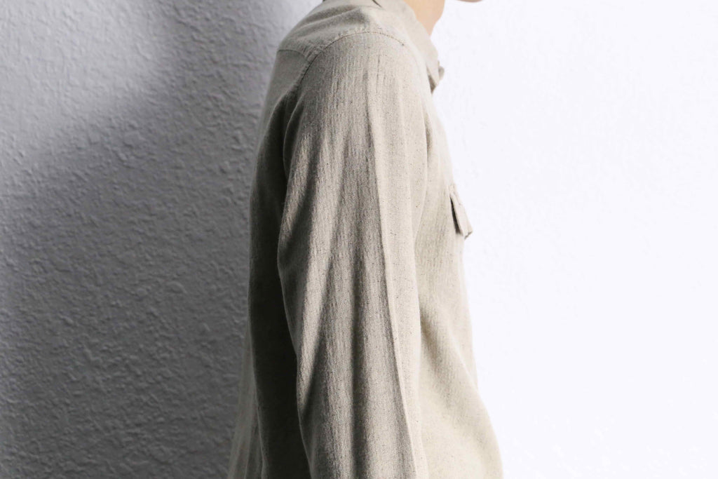 独特な生地の表情と風合いが素晴らしいウールシャツの入荷。