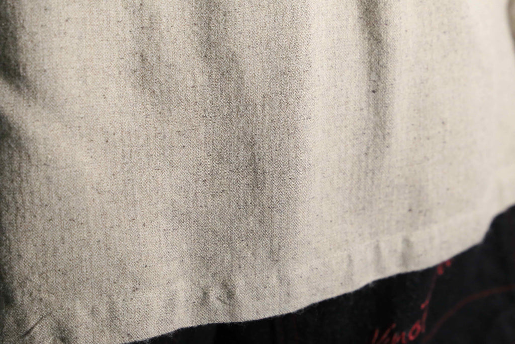 スラックスなどで偶に見られるビスコース×ウールの柔らかく、ふわっとした毛羽感を備えた、言うなれば"ガーゼ"のような質感の1着です。