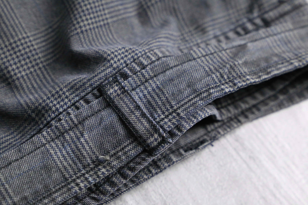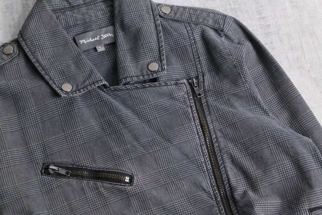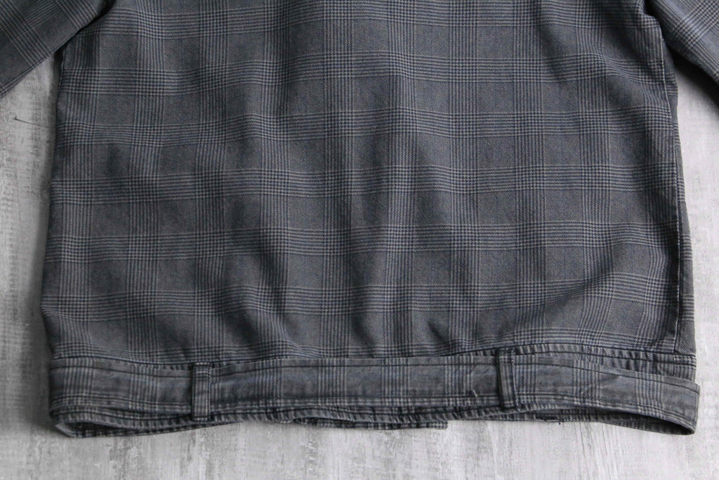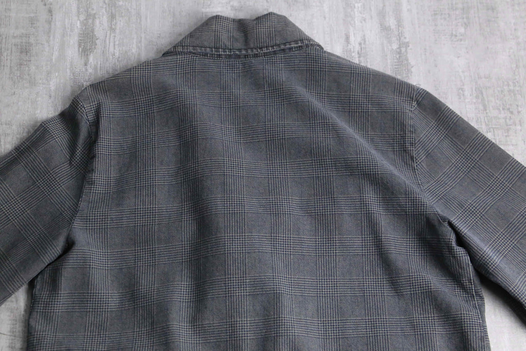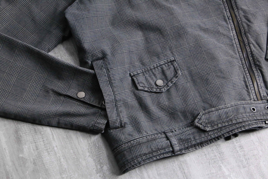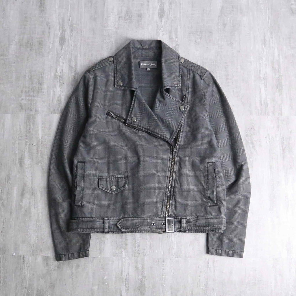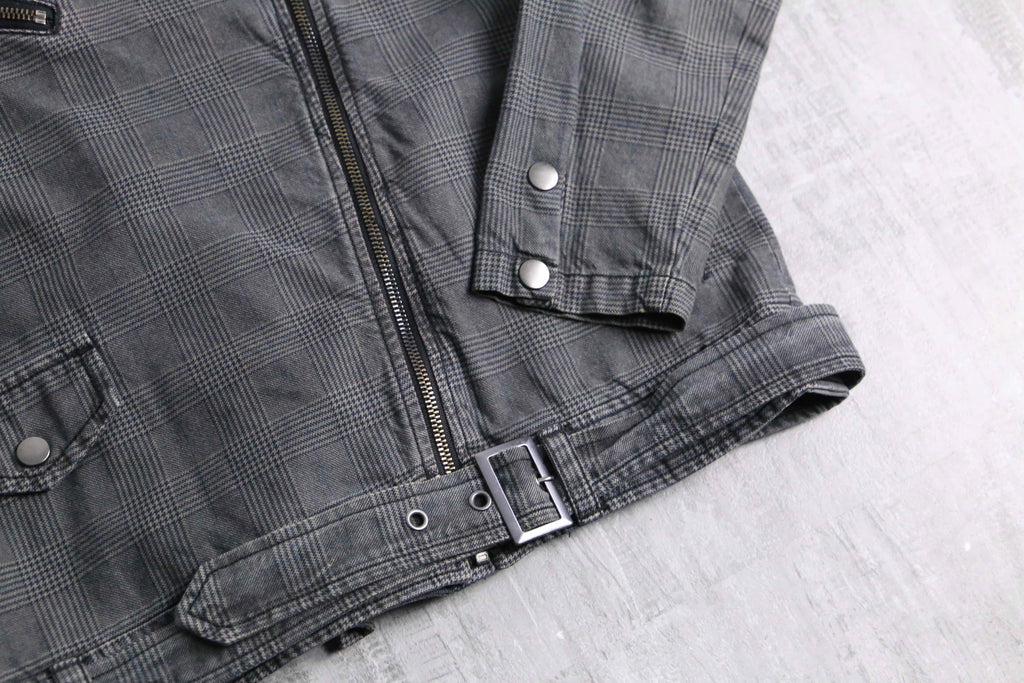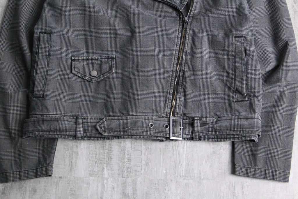グレンチェック柄×コットン100%によるショート丈のダブルライダースジャケットの入荷。