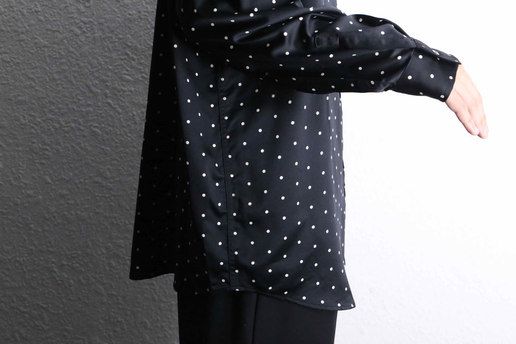 サテン生地の高級感溢れるドットデザインシャツの入荷。