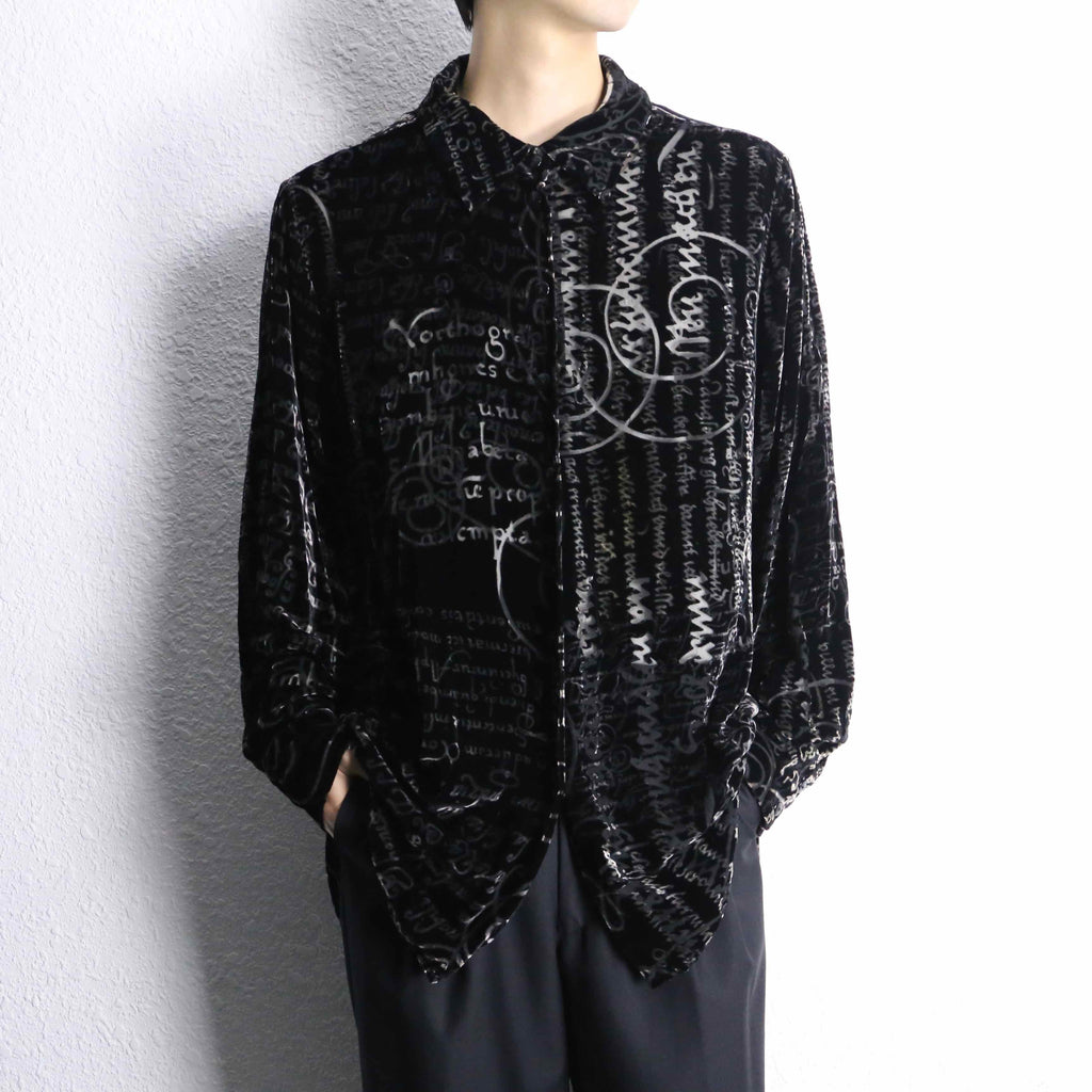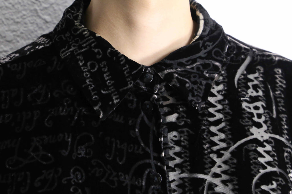 various letter design velours see-through shirt