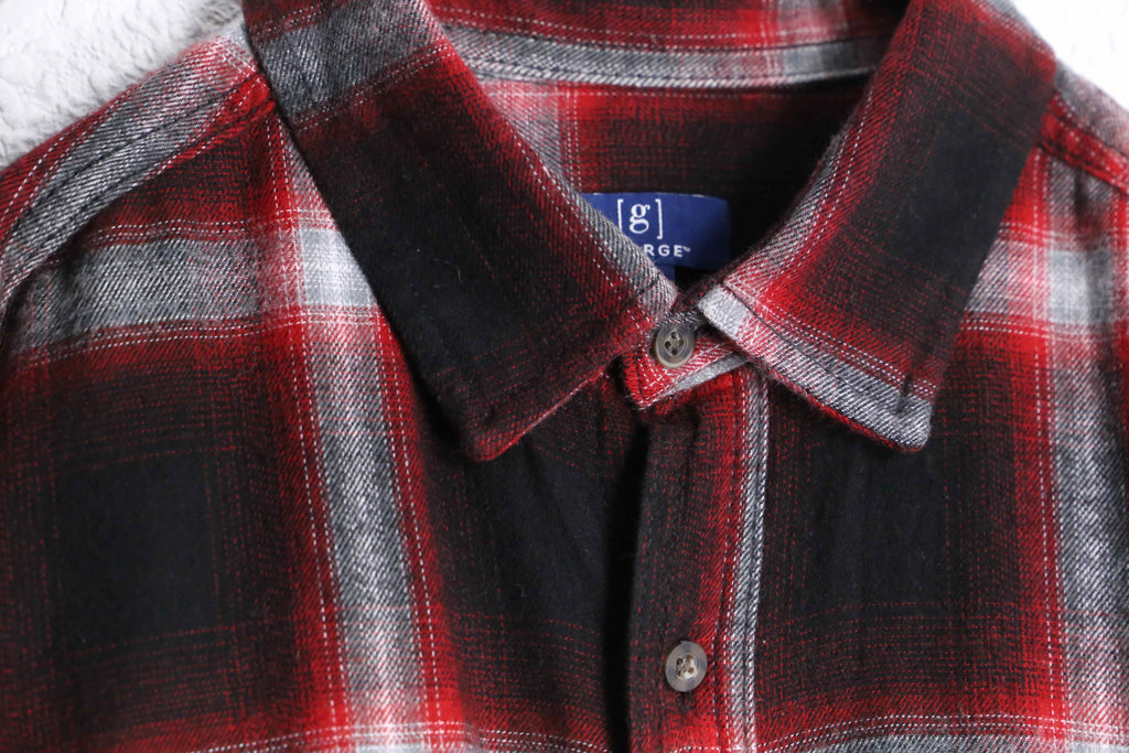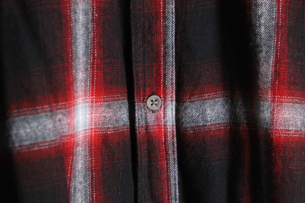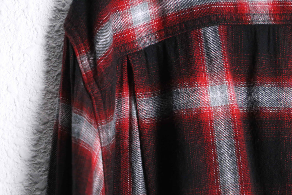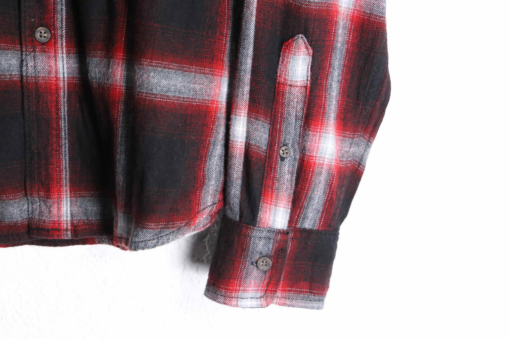 恐らく皆様が探し求めている赤黒2色のみで構成されたオンブレチェックがフランネル仕様で登場。メンズ規格の"サイズ表記L"は着る人を選ばないゴールデンサイズ。狭すぎず広すぎない丁度良い身幅とスリーブが、インナーとしても秋春の軽い羽織としても機能する二面性を持ち合わせ、これからのウィンターシーズンには様々な系統のインナー枠になること間違いなしです。