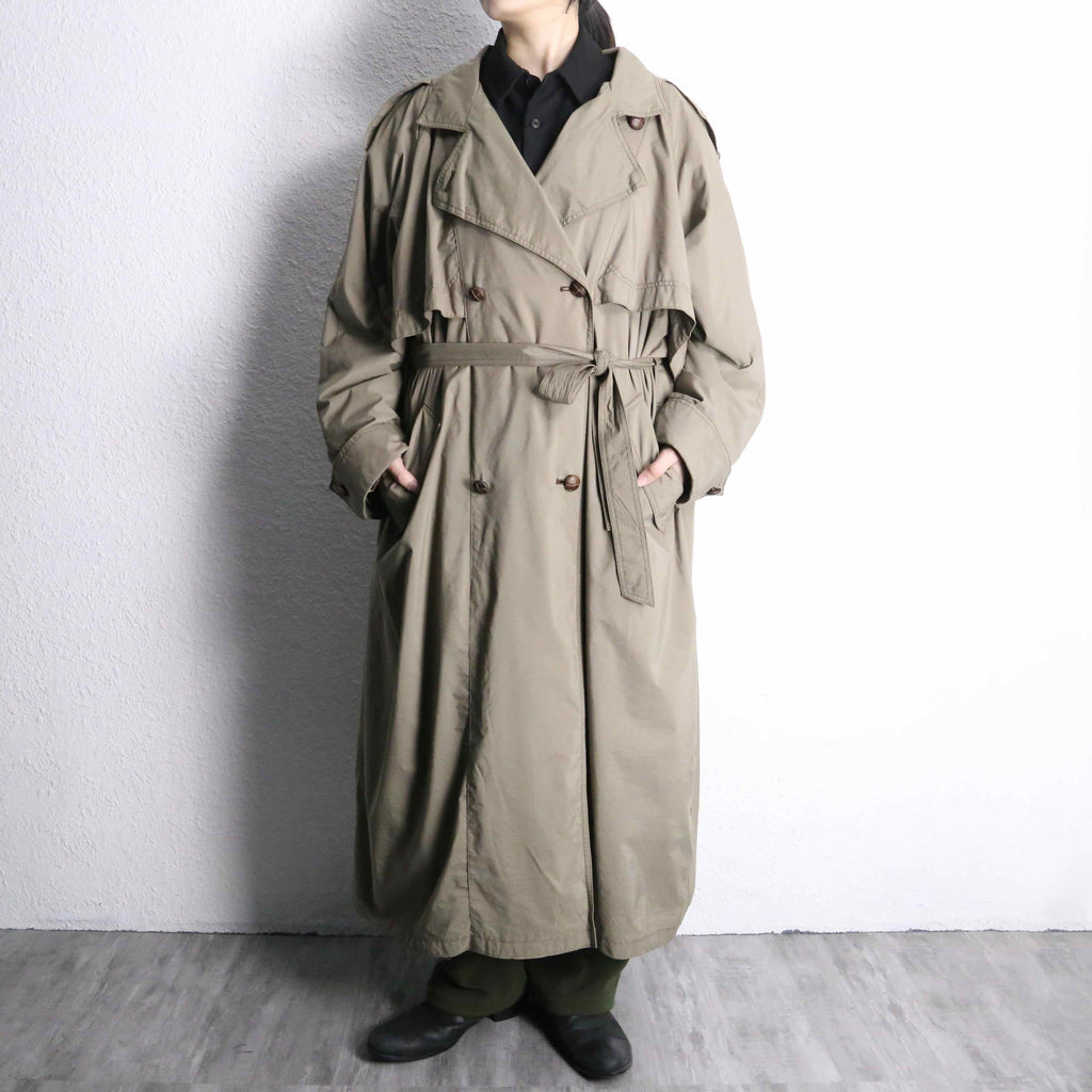 sand beige color poly long trench coat