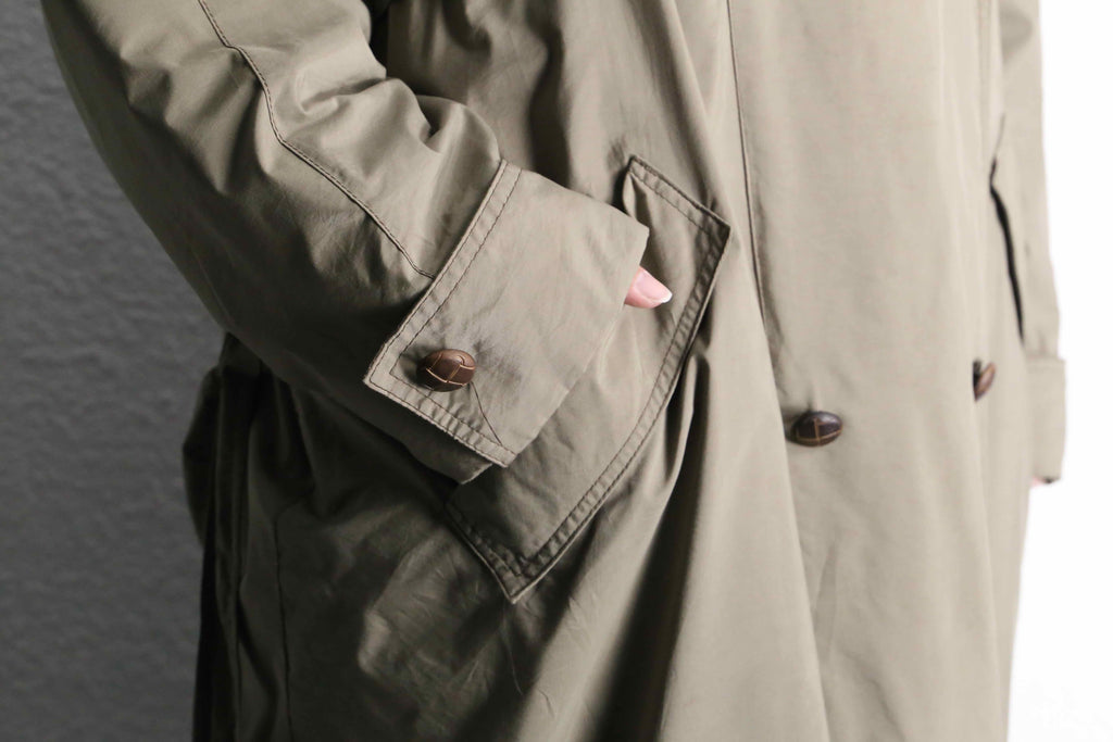 カジュアルな服装にさらっと羽織って頂くと◎、コーディネートの主役になってくれる1枚です。取り外し式のライナーも袖口まで完備となっていますので、地厚なトレンチコートよりも活躍の機会が多いアイテムです。この機会に是非。