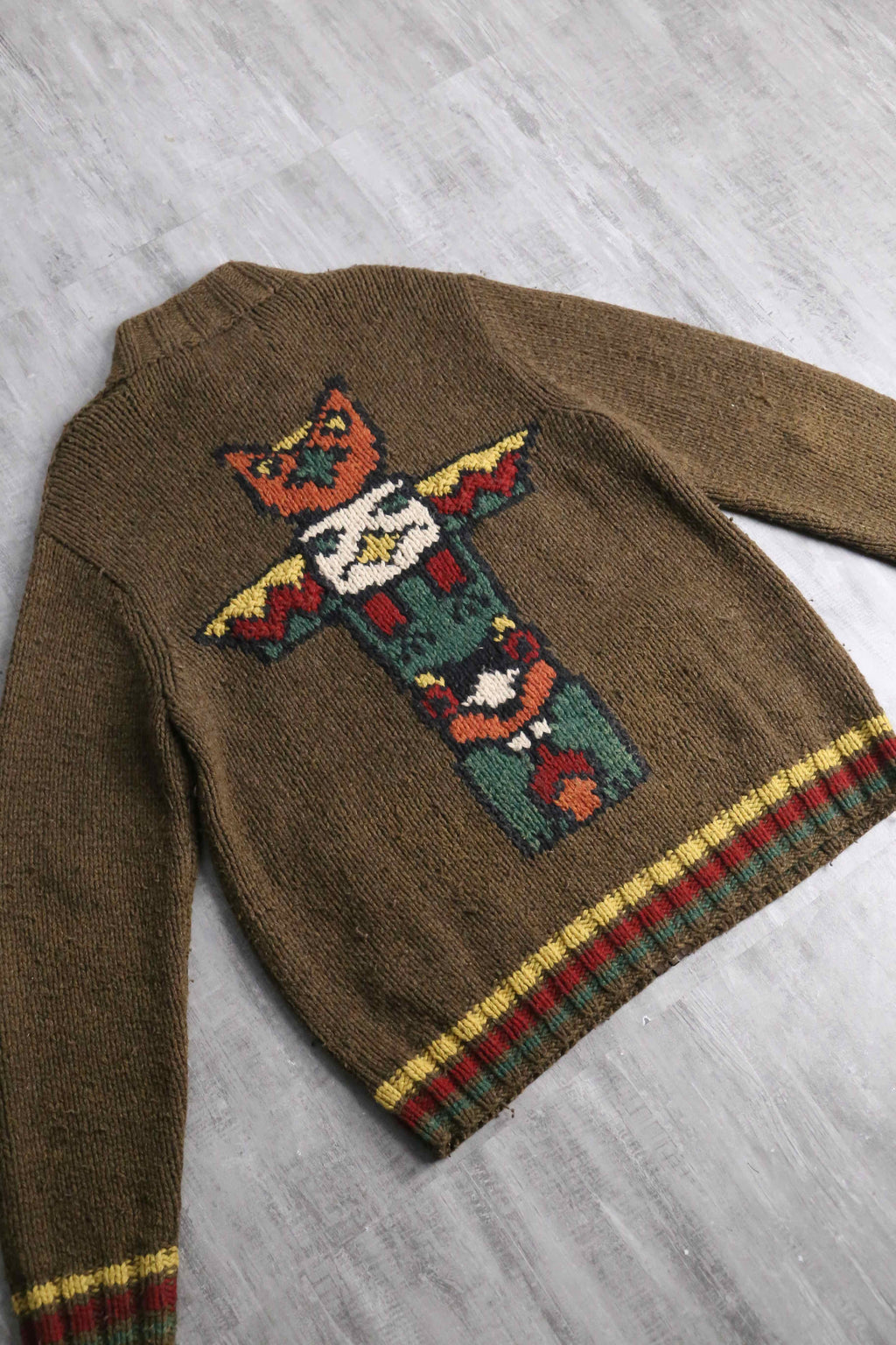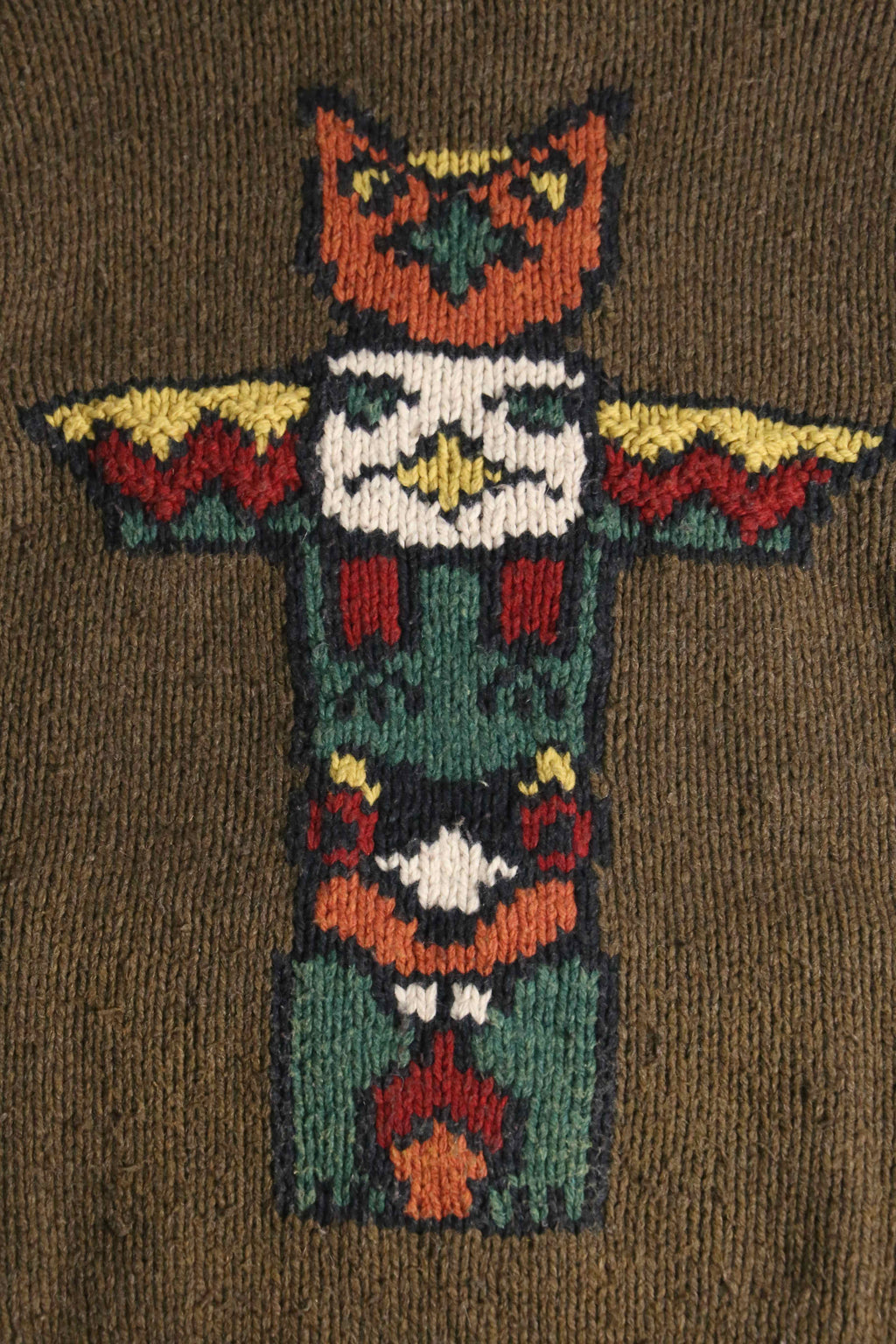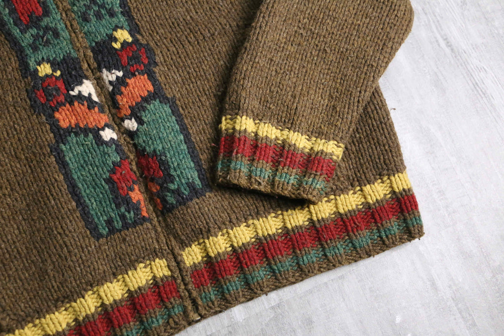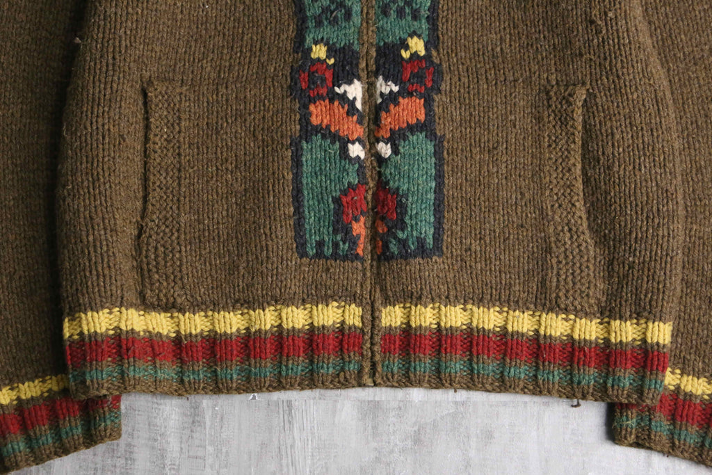 "Eddie Bauer" totempole design wool hand knit zip jacket