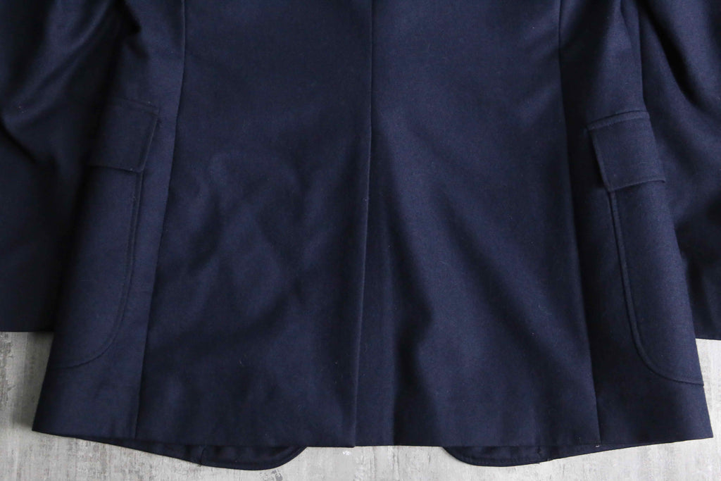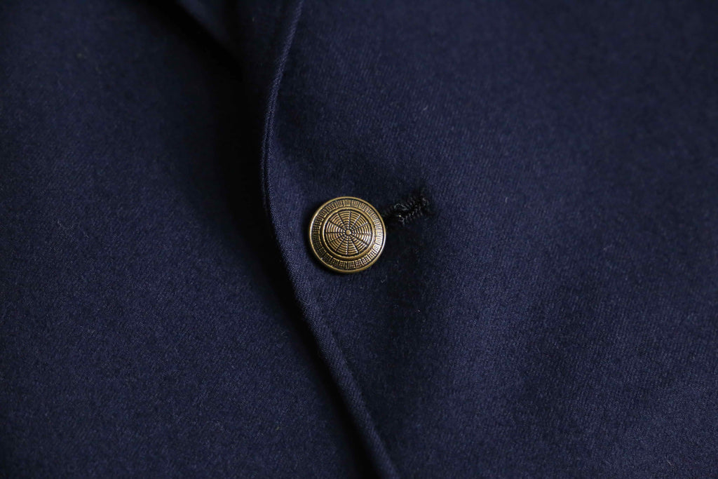 推定ウールの程よい起毛感と柔らかさを保ったいい質感。ボタンは金というよりも真鍮のような鈍さのある色味で、どこかシックな印象を与えます。