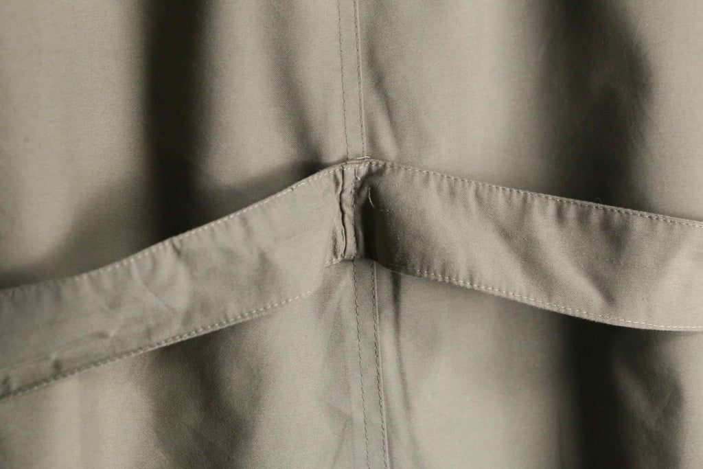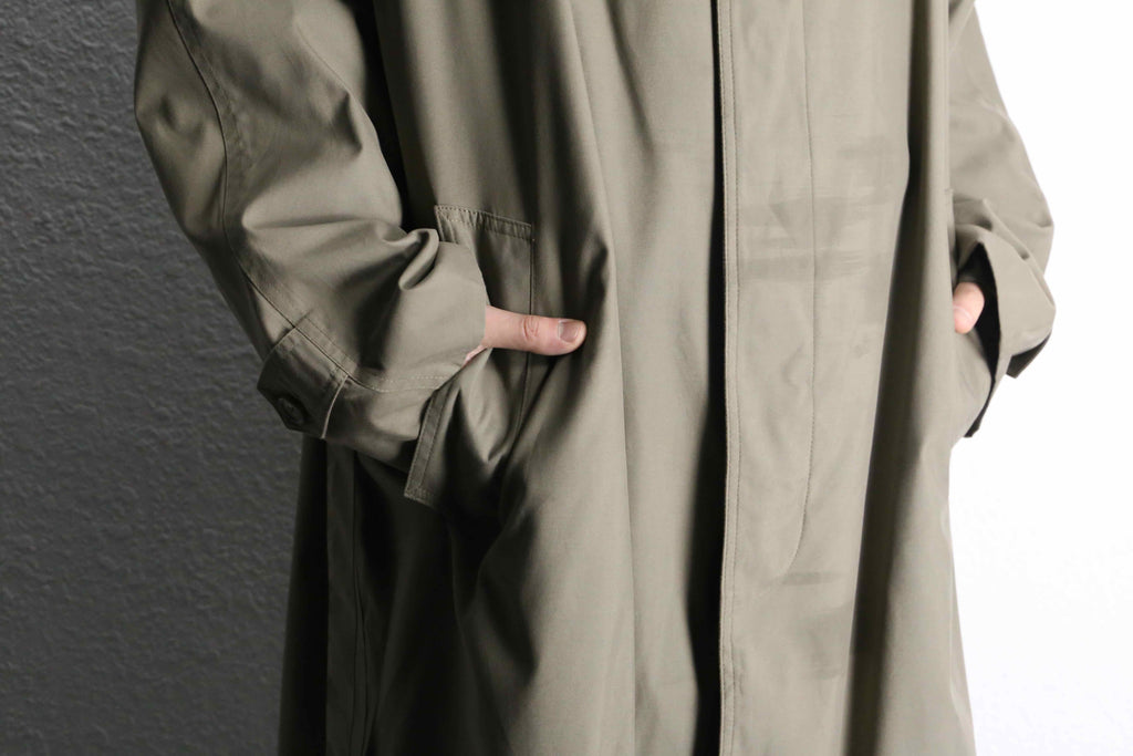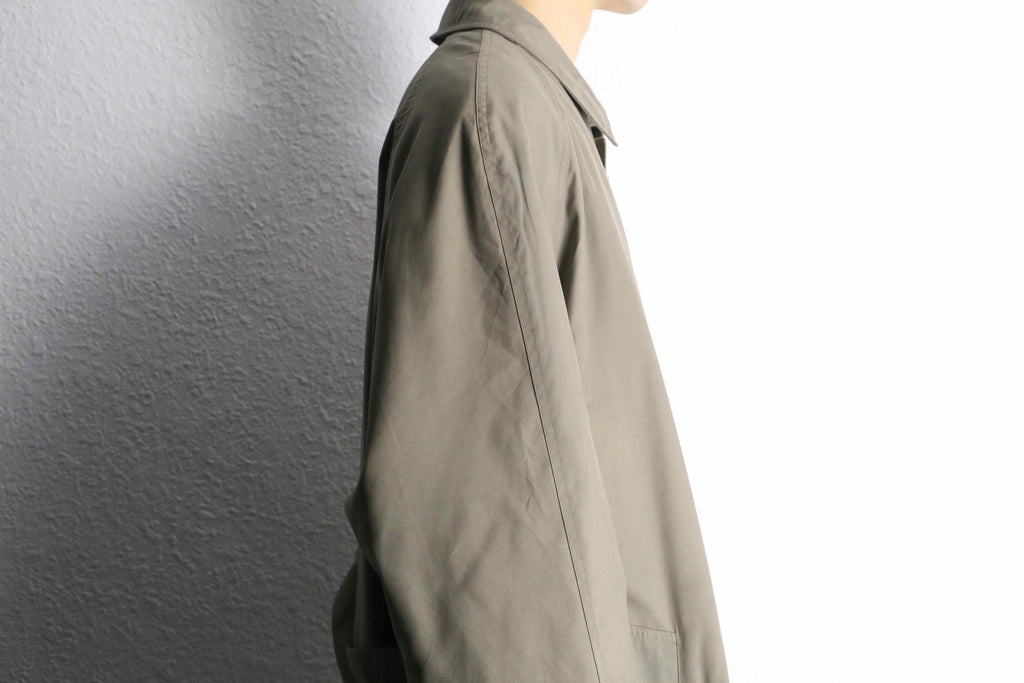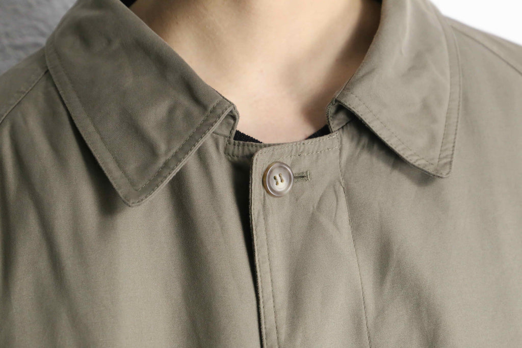 比翼仕立てのミニマルなバルマカーンをベースに、肩のラインが綺麗に落ちるラグランスリーブを採用。突っ張ることなく、着る方の肩のラインに沿ってゆったりと降りてくれます。