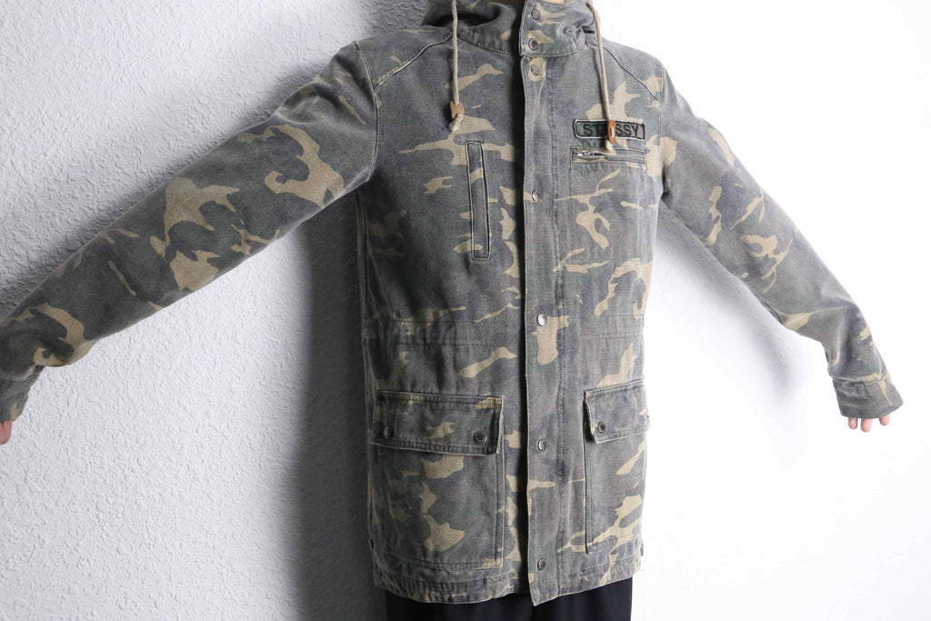 2000年代白タグのStussyのコットンキャンバス地のカモ柄ジャケット。同ブランドであまりカモ柄のイメージがなかった為新鮮な印象を受けます。