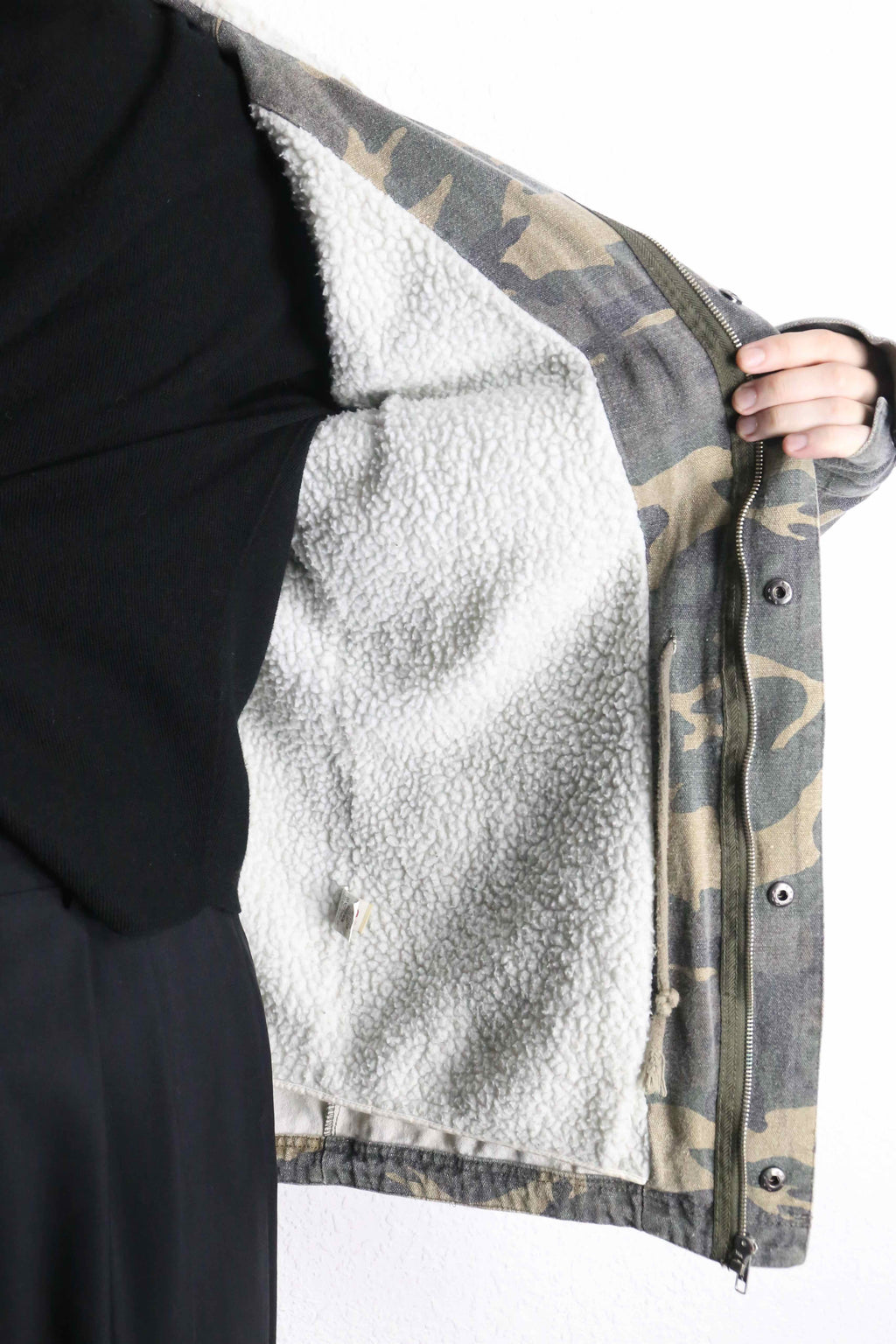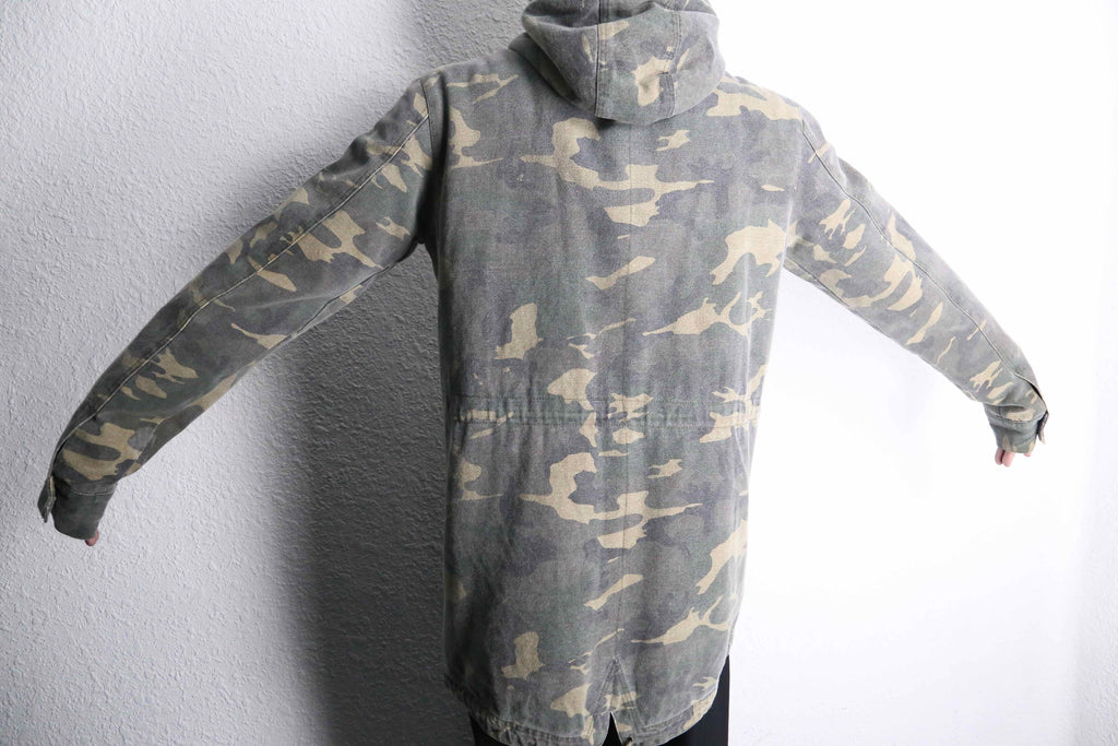 タフで風を通しにくいコットンキャンバスのアウターシェルに加えて、裏地は温かいボアフリース生地。フード付きで裾はフィッシュテールと明らかにミリタリーサンプリングの雰囲気を醸します。S表記で脇口はやや狭めの作りですが、着てみた感じはM相当。多くの方の頼もしいアウターになってくれそうです。