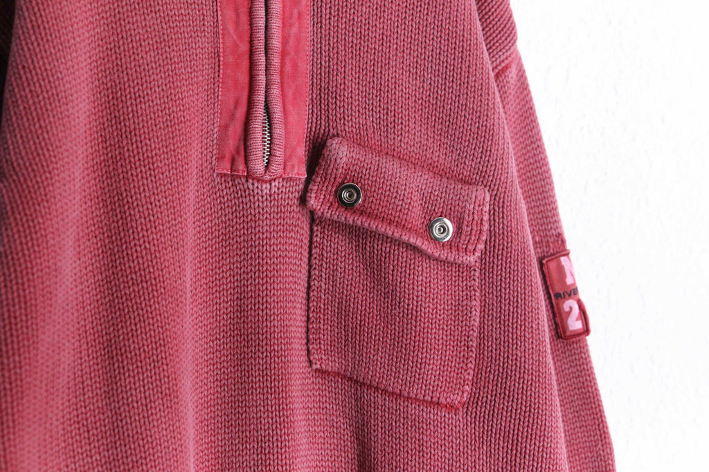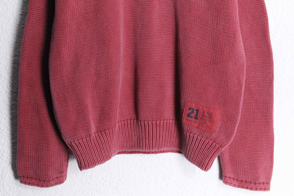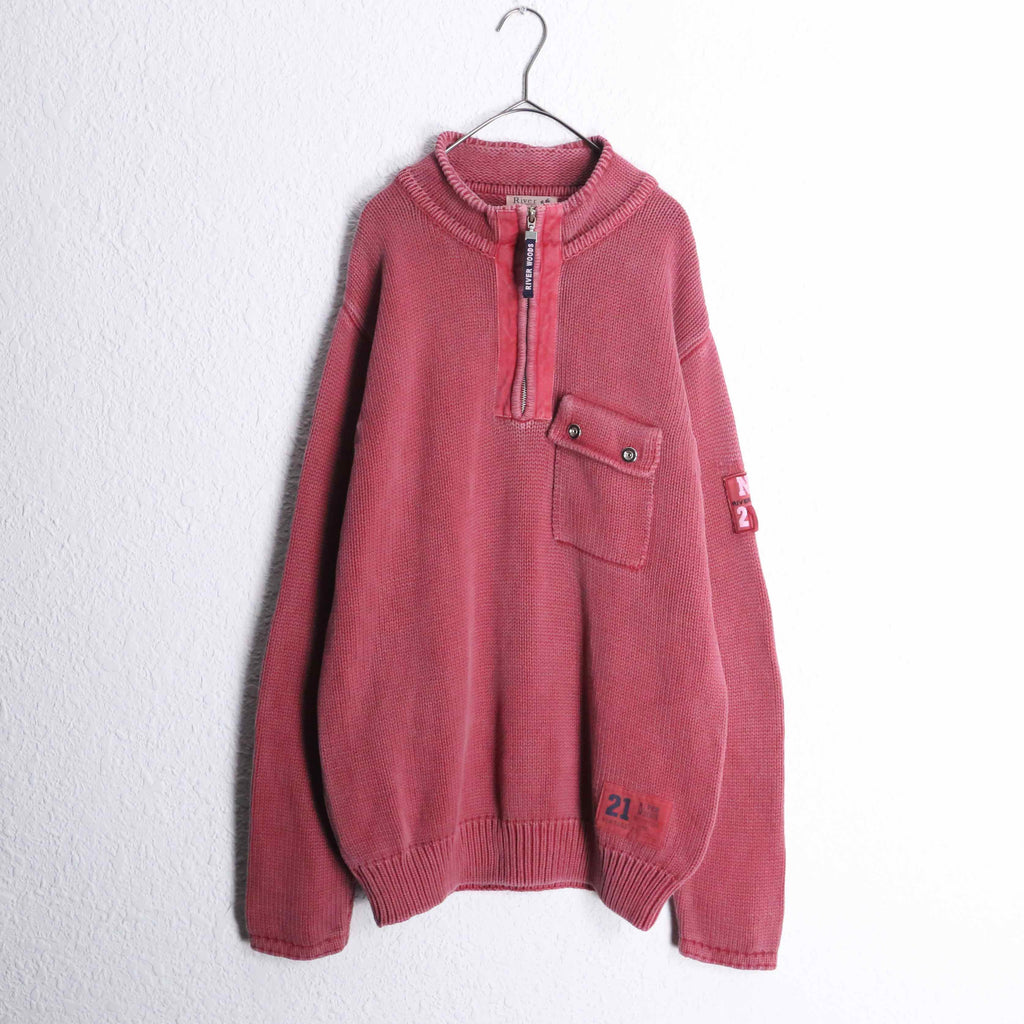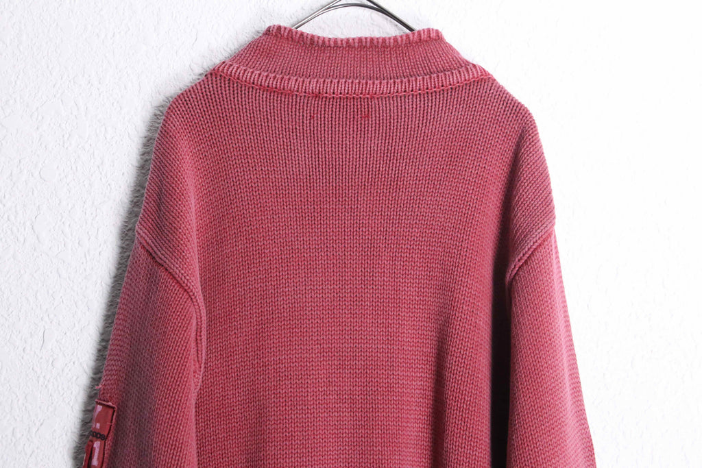 military taste pink half zip cotton knit