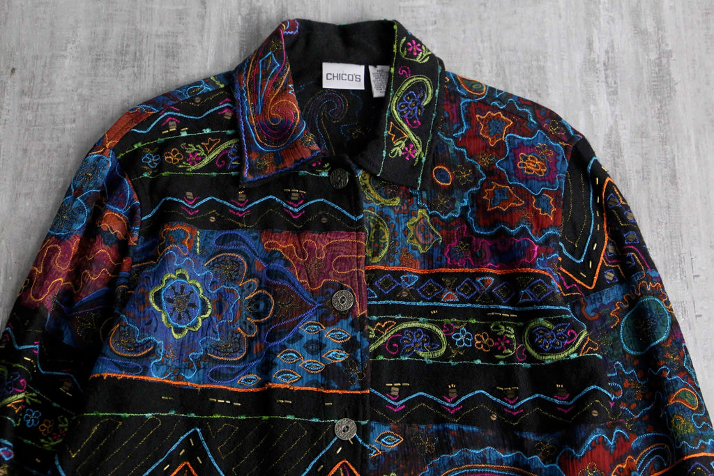 "chico's" multi color shirt jacket