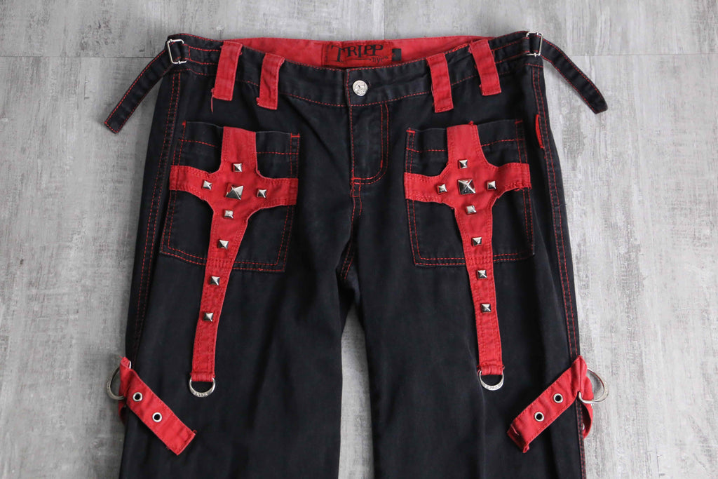 TRIPP NYC のフレアパンツ。90〜00年代のアンダーグラウンドカルチャーを思わせる、エッジの効いたディテールが随所に見られます。