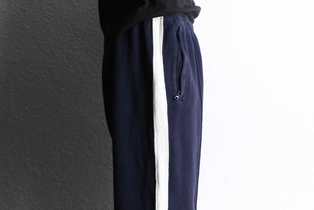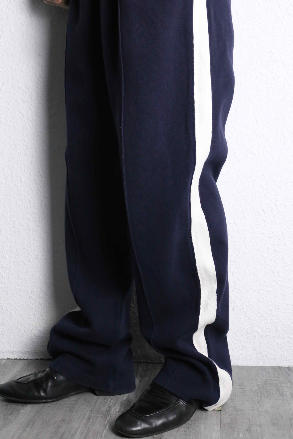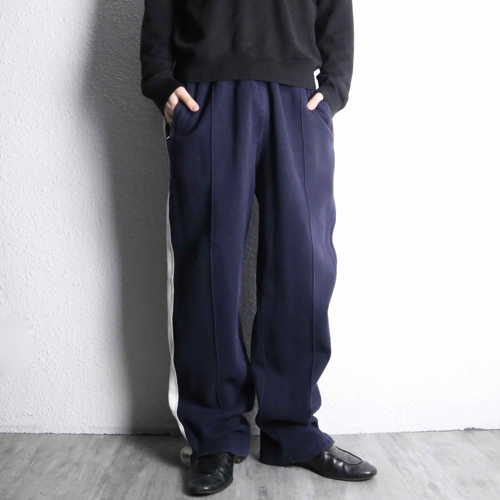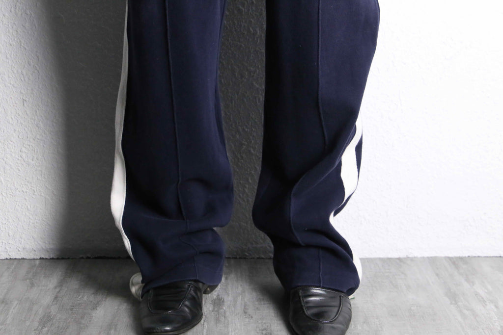 一見すると、ただのネイビーのワイドパンツ。けれど、よく見ると脇に走るホワイトのライン。裾にはジップ。ポケットもジップ仕様。