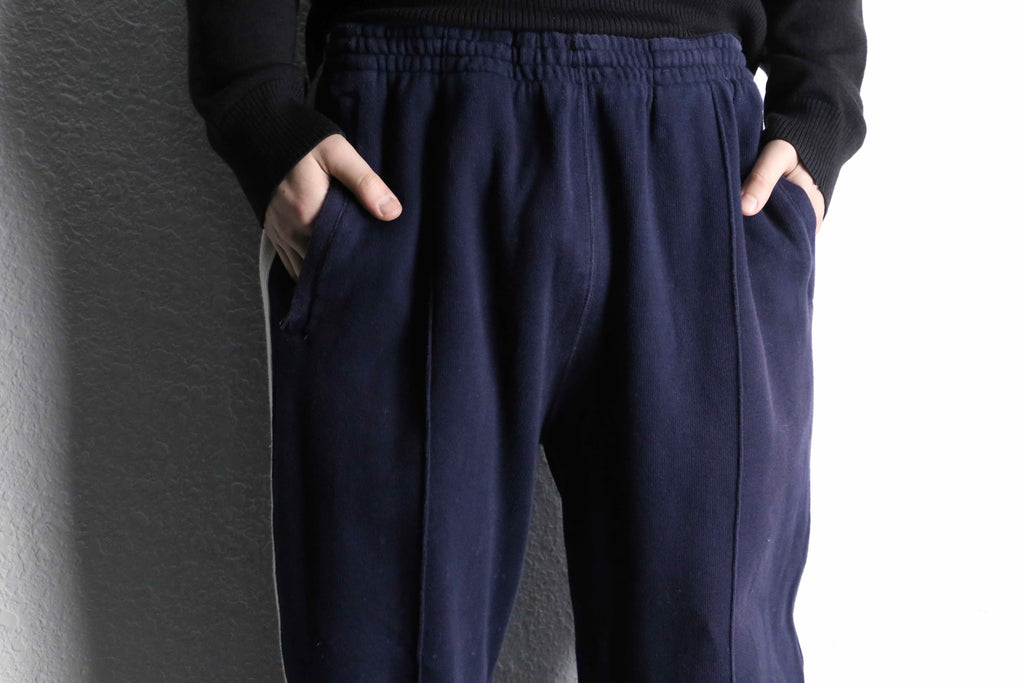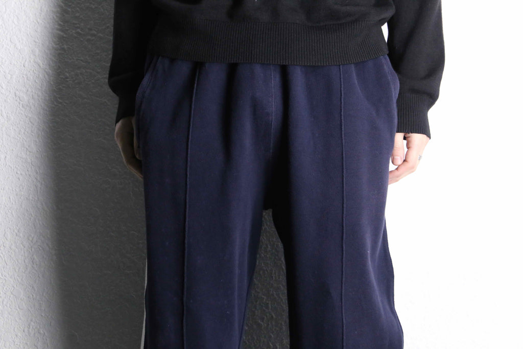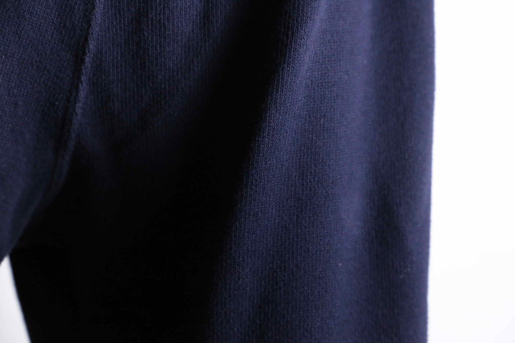 コットン100%。ジャージーのような柔らかさと、スラックスのような落ち感。歩くたびに生地が縦に流れて、自然と縦のラインをつくる。