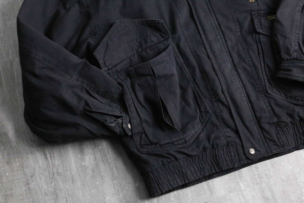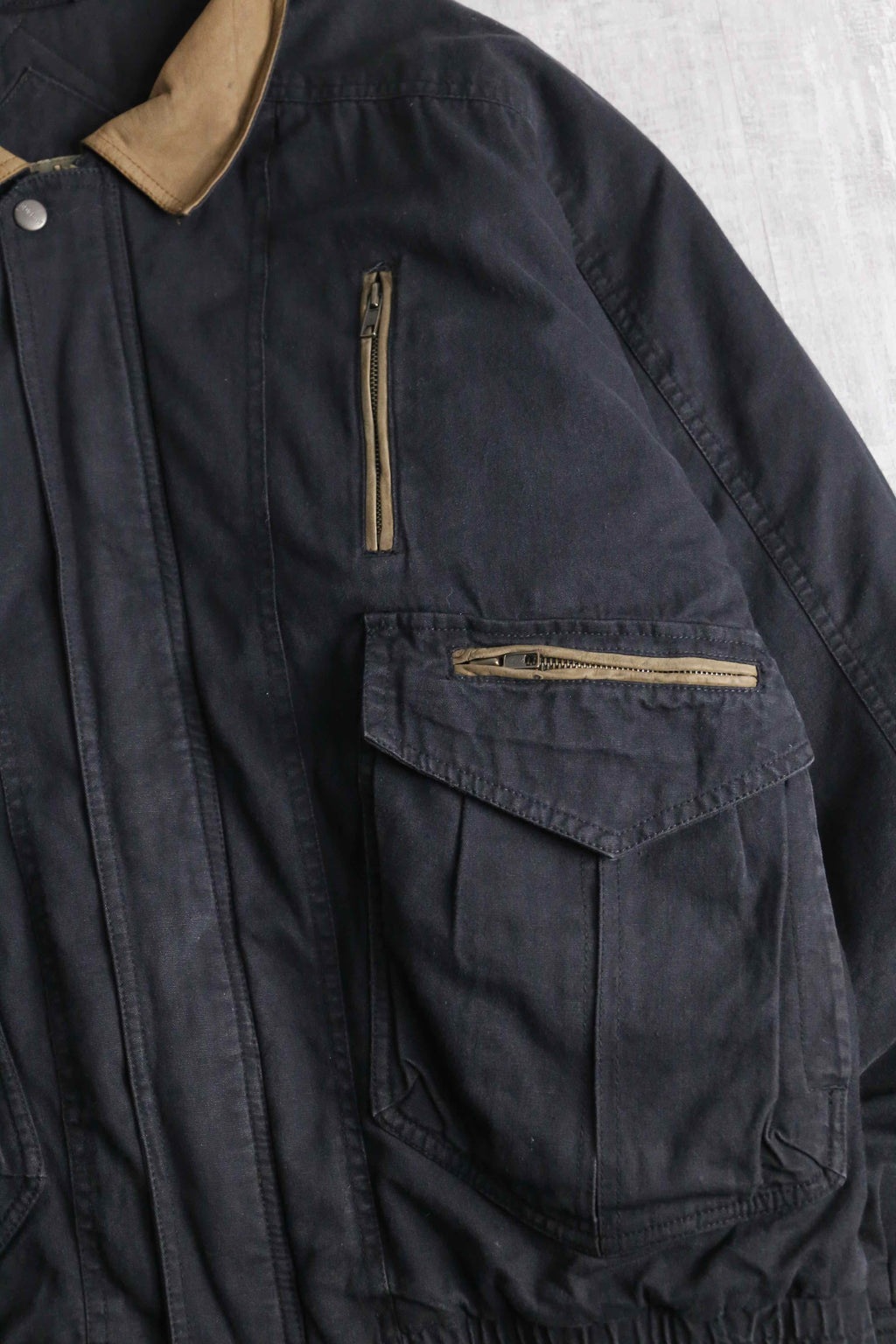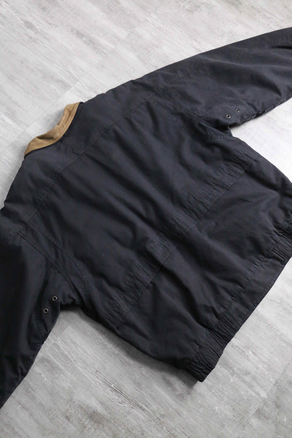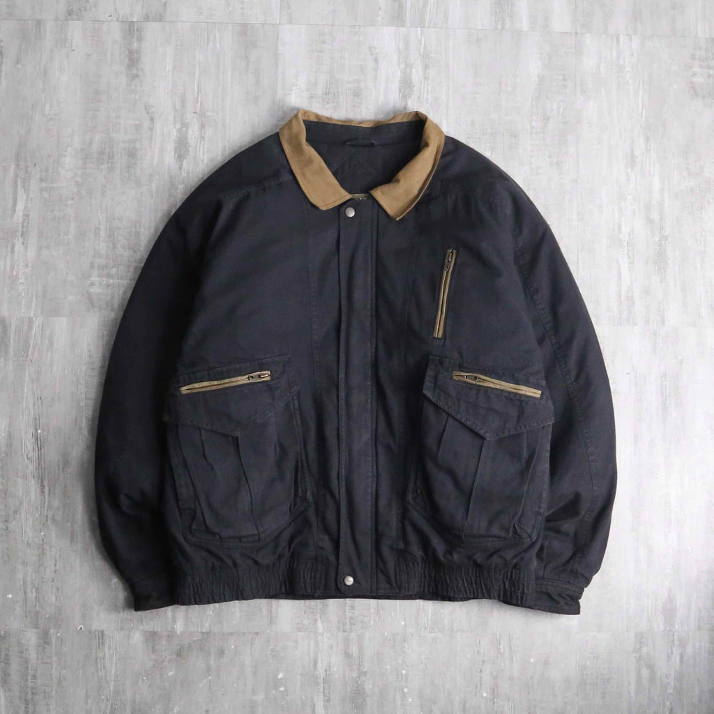 80年代から90年代のボンバージャケットをオーバーダイしたかの様なビジュアル。