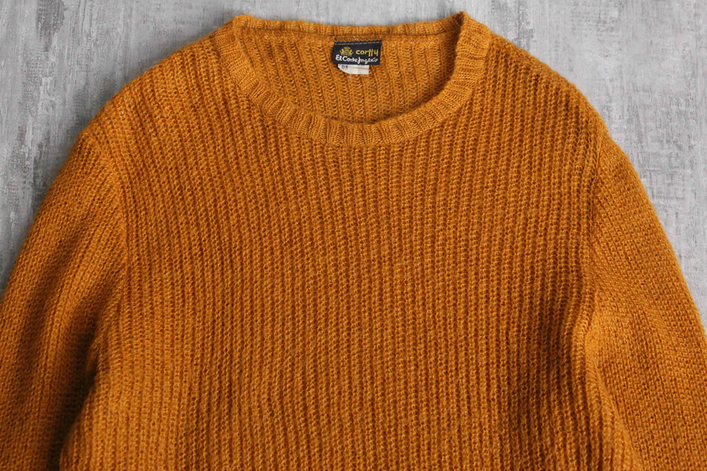 軽やかな着心地の、モヘア混クルーネックニット。ふんわりとした毛足が表情をつくり、目を引くオレンジカラーが程よい存在感を添えてくれる一着。