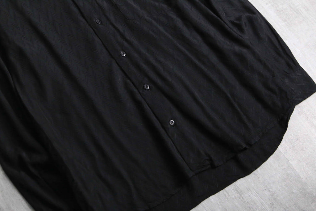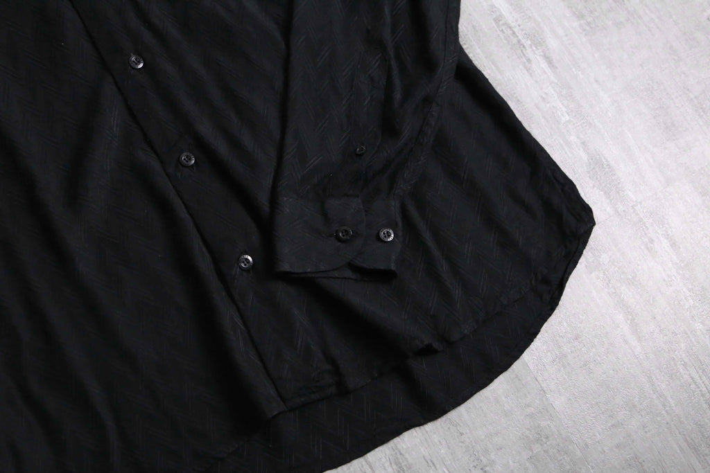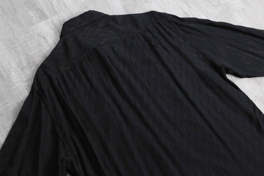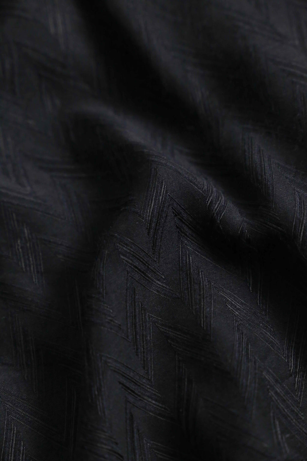正確にはヘリンボーン織りではありませんが、ジャカード織りなのか織柄がヘリンボーンに近しいことからそう表記しました。織柄は光沢を帯び、黒と調和し至極モードな仕上がり。カジュアルシャツの域を裕に越えた、素晴らしい逸品。
