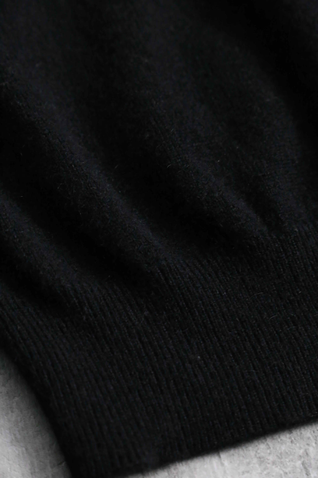 テーラードの下に仕込む等に適したMサイズ。浅めのVネックでデコルテ等も綺麗に魅せてくれます。着ているのを忘れるくらいの軽さと、薄い割に非常に高い保温力を合わせ持ちます。無論一枚で着てもお洒落なので、スラックス等で品良く合わせて着てみてください。
