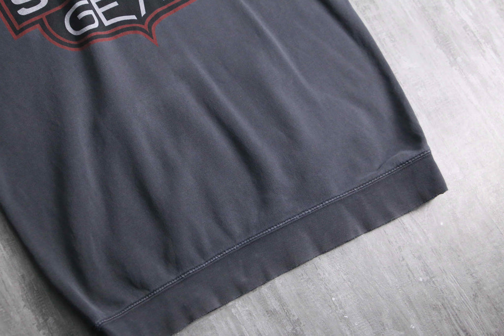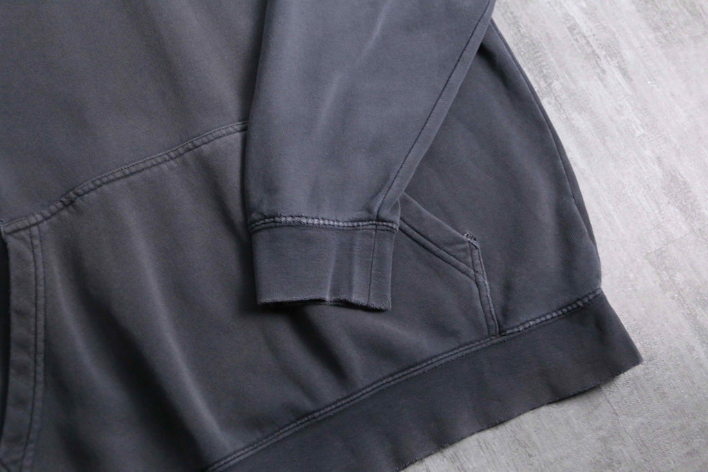 使い込まれてクタッと柔らかくなったコットンポリのスウェット生地、Lサイズのルーズなサイジング、色落ちしてフェードしたグレーボディがすごく雰囲気良くて魅力的です。涼しくなってきた今この時期に1番欲しいアイテムです。