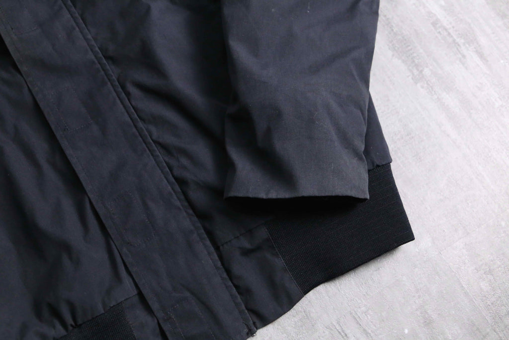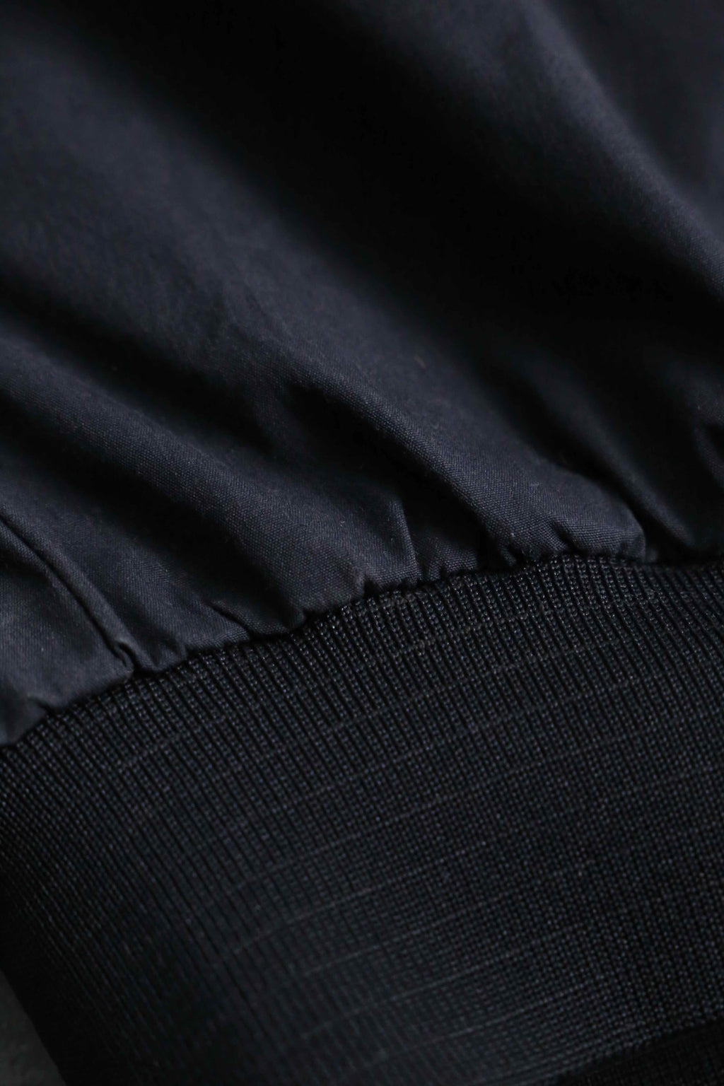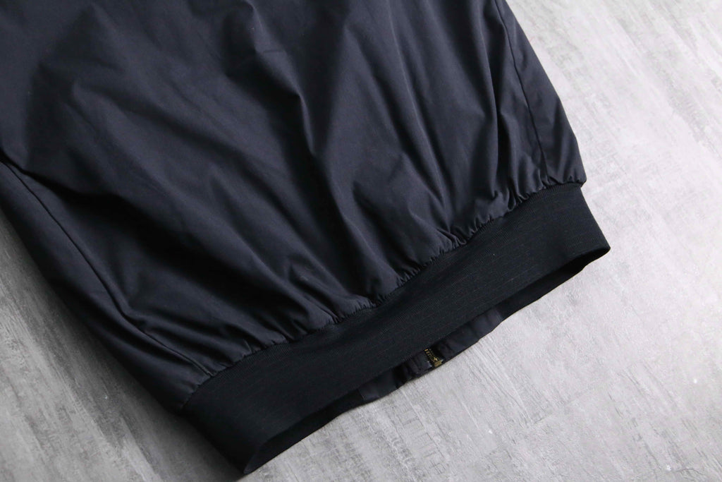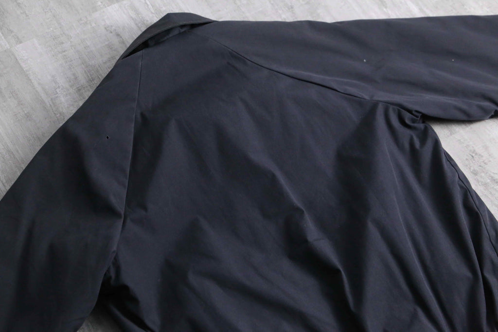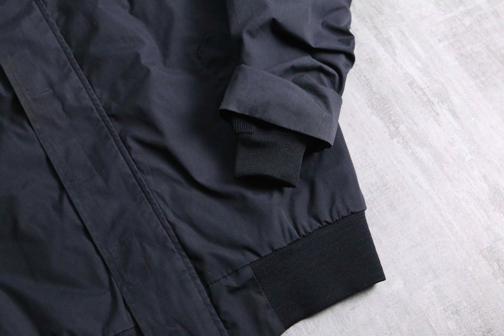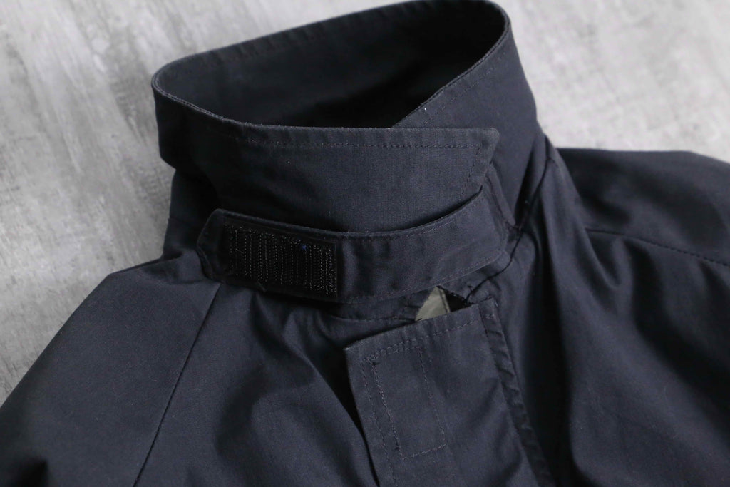 シェルはコットンポリの二者混紡生地、かつ撥水コーティングがされておりライニングはオニオンキルトの中綿入り。ポケットはフロント両サイドに1つずつ、内ポケも2つと非常に機能的。首元はチンストが付き襟を立ててベルクロを留めることで防風性も高められます。袖口は筒袖の内側にリブが付く仕様で冷気の侵入を防ぐ仕様。冬場のヘヴィアウターとして十分に機能します。