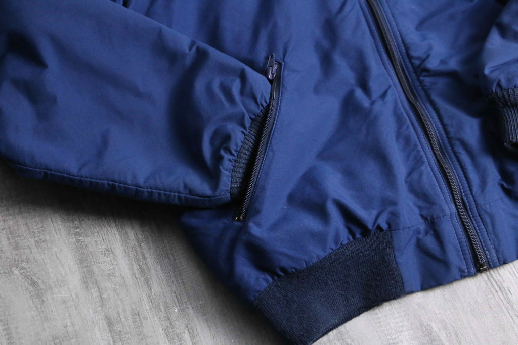 防水防風に富むナイロンシェルにフリースのライニング、軽量なルックスとは裏腹に非常に高い保温性を誇ります。アーム内部はツルッとしたポリエステルの裏地が貼られており袖通しも良く大変実用的かつ機能的。ヴィンテージ市場でも不動の人気を誇る理由は、理屈ではなく袖を通せば分かるかと思います。リブの締まりも良く理想的な丸っこい短丈ボンバーシルエットです。