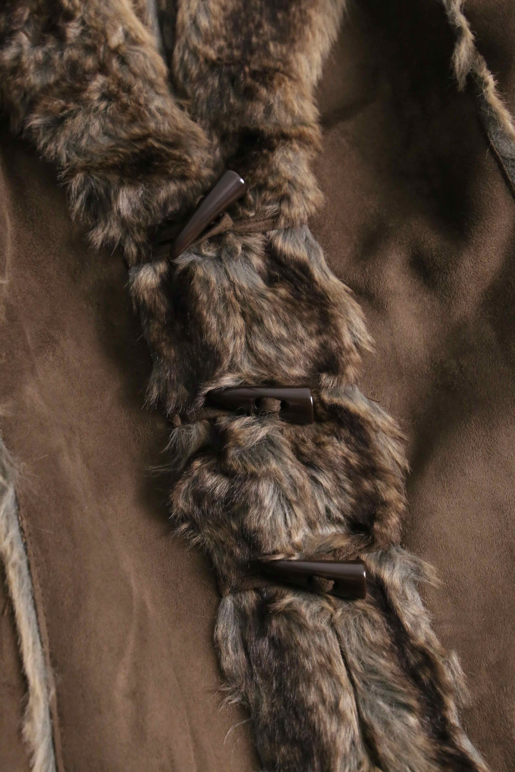 フェイクファーとフェイクムートン生地のデザインムートンジャケット。フライトジャケットノリではなく、ざっくり開いた胸元とトグルボタンによってY2Kにも通ずるテンション感です。