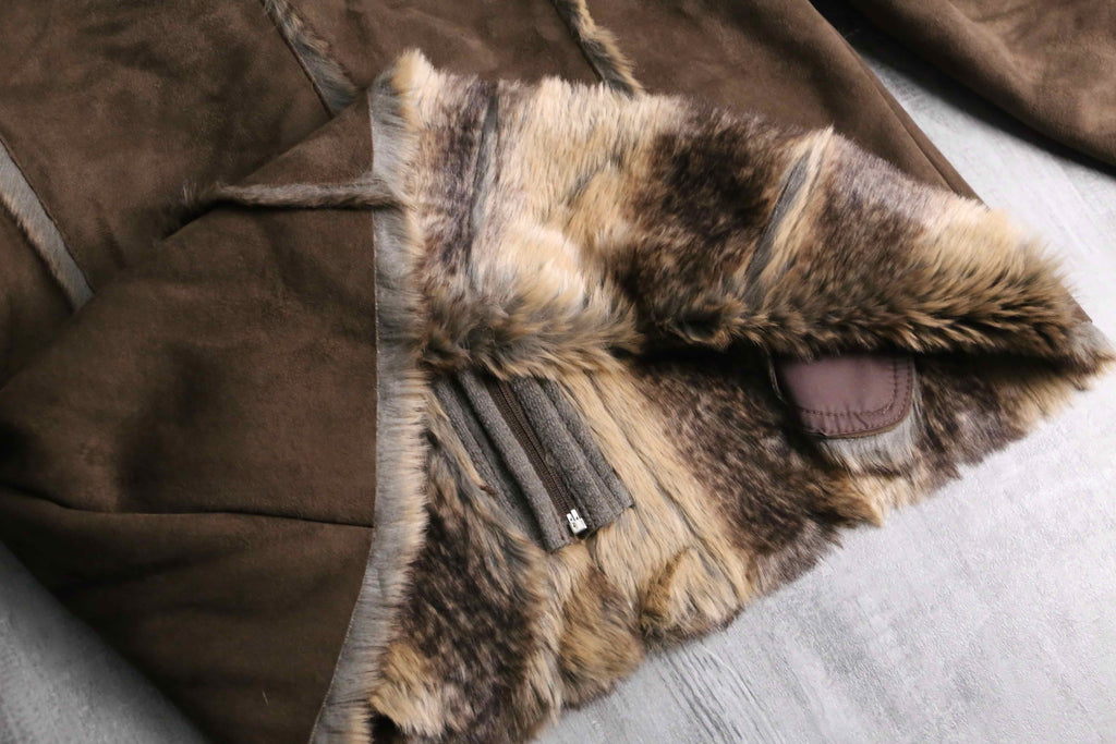 フェイクとはいえかなり保温性も高く、上手くインナーにフーディーやニット等仕込めば確りアウターとして機能します。フレアデニムなんかとも相性良さそうですので是非お試しください。