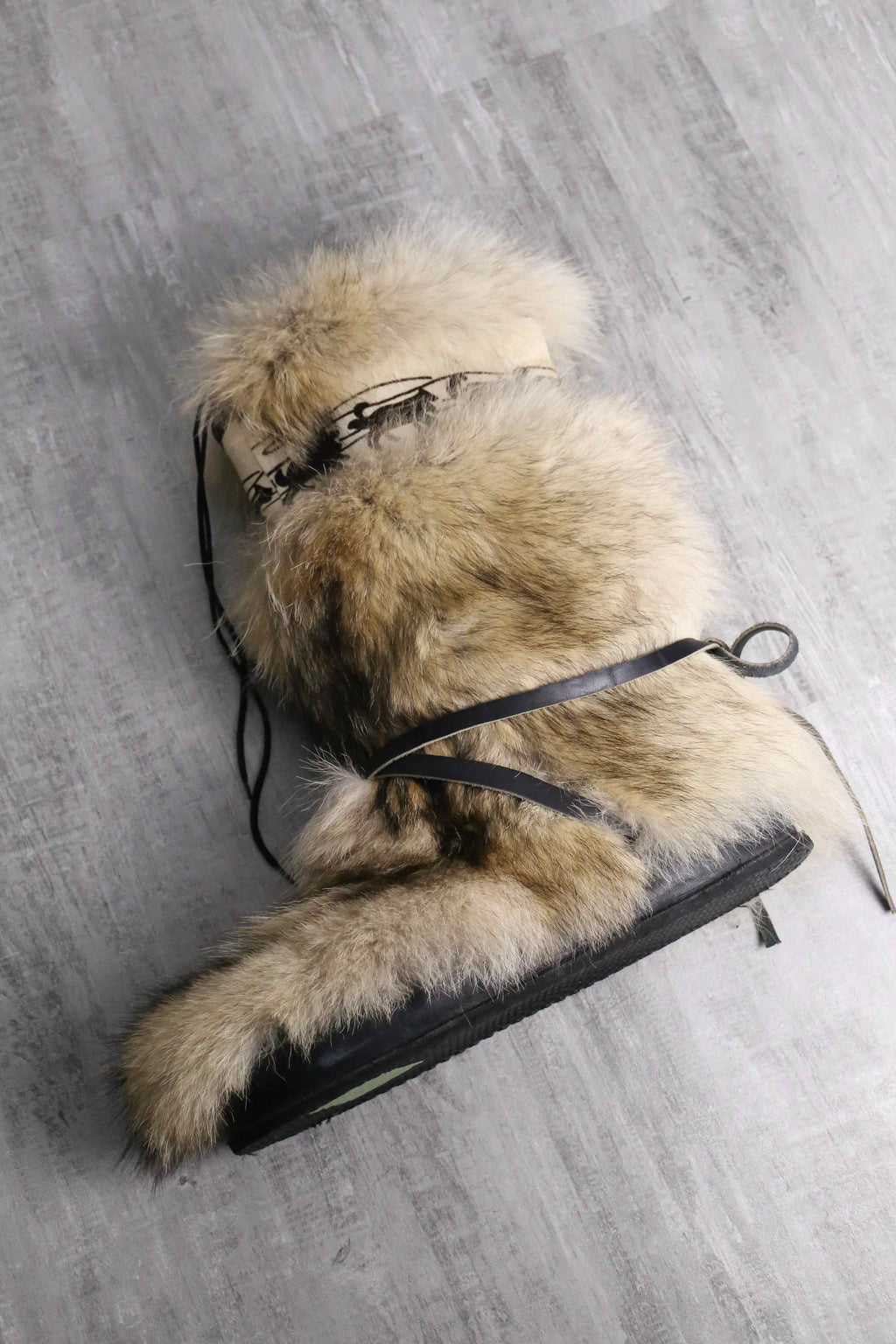 全く詳細不明のフェイクファーモンスターブーツ。犬ぞりのデザインがあしらわれていることから、北極圏の出自かと推測しますが、そのアンノウンな雰囲気にも非常に惹かれます。