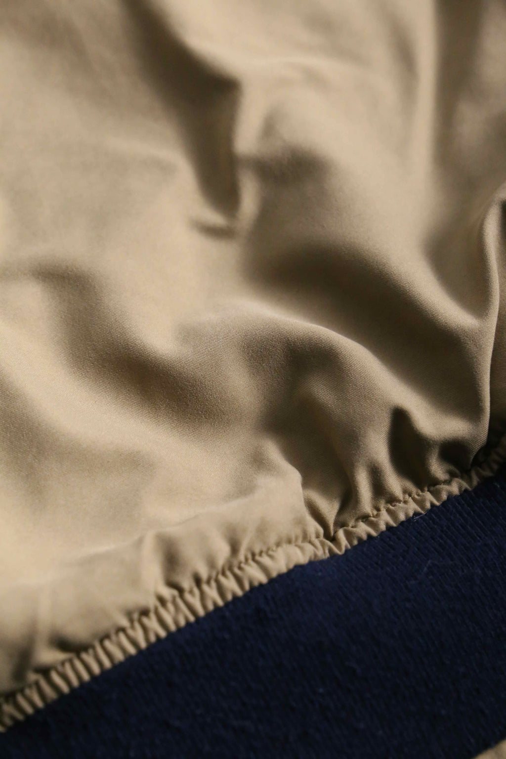 完成された名作Warm-upを引き合いに出すくらいにはこちらも非常に完成度の高い逸品。フリースライニング、スムースシェル、キュッと締まったリブ、アーム内部のみナイロンを貼り、また肩はラグランになっているため、"袖通しが大変し易くあり、かつ軽くて暖かい"という優れもの。