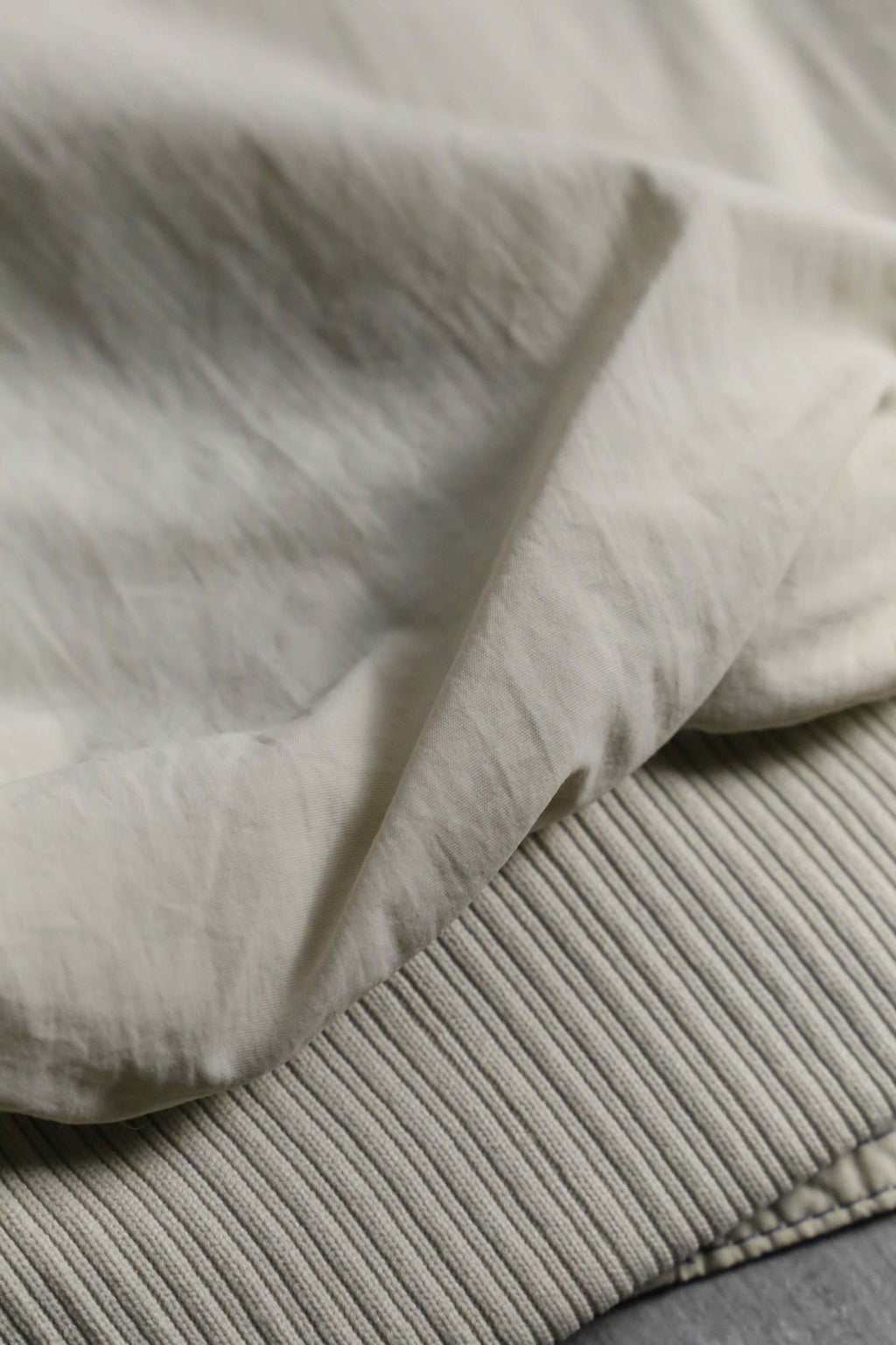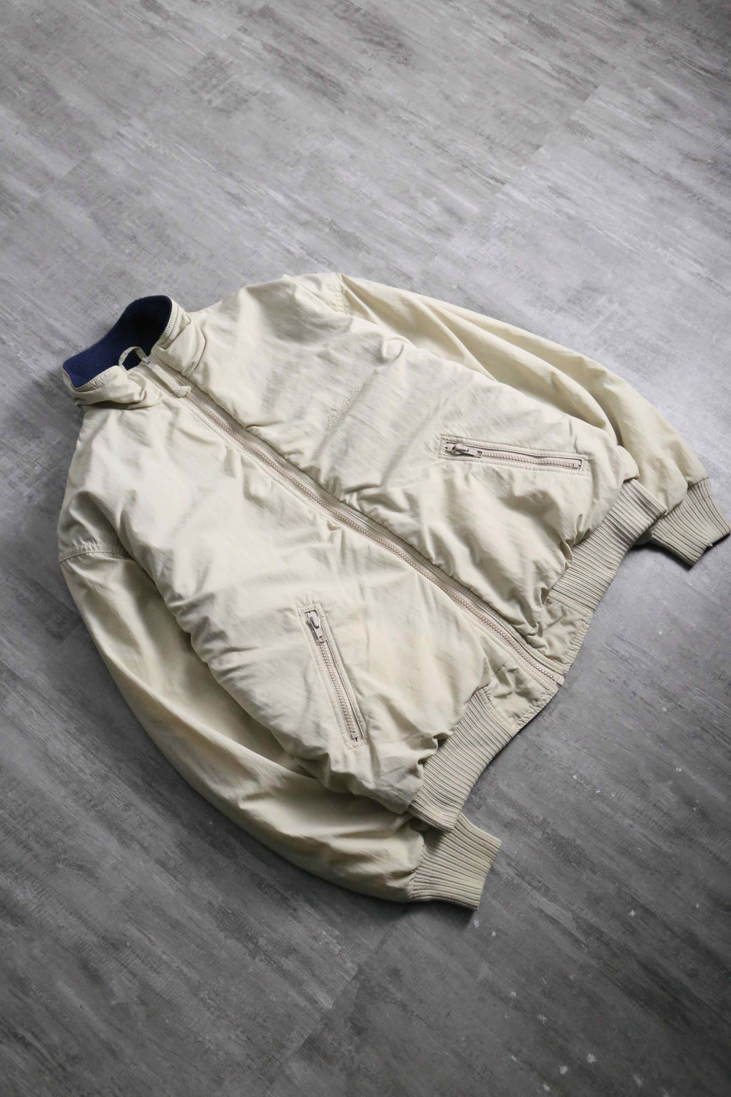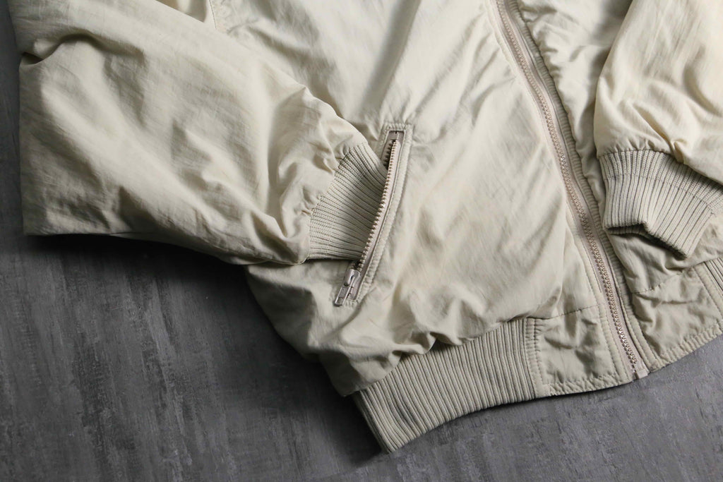 フリースライニングと中綿、アーム内部ナイロンの裏地切り替え、リブはキュッと締まり理想的な短丈ボンバーシルエット。暖かい上にシルエットも良く、生成り×ネイビーの好配色。その上軽い為、かなりの頻度でヘヴィユースしていただけそうです。