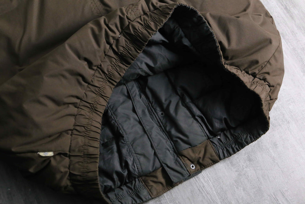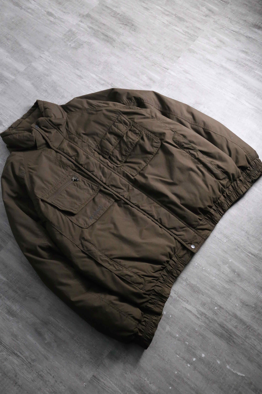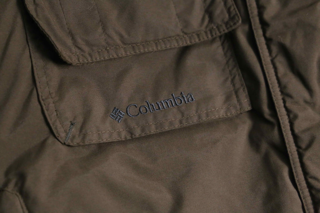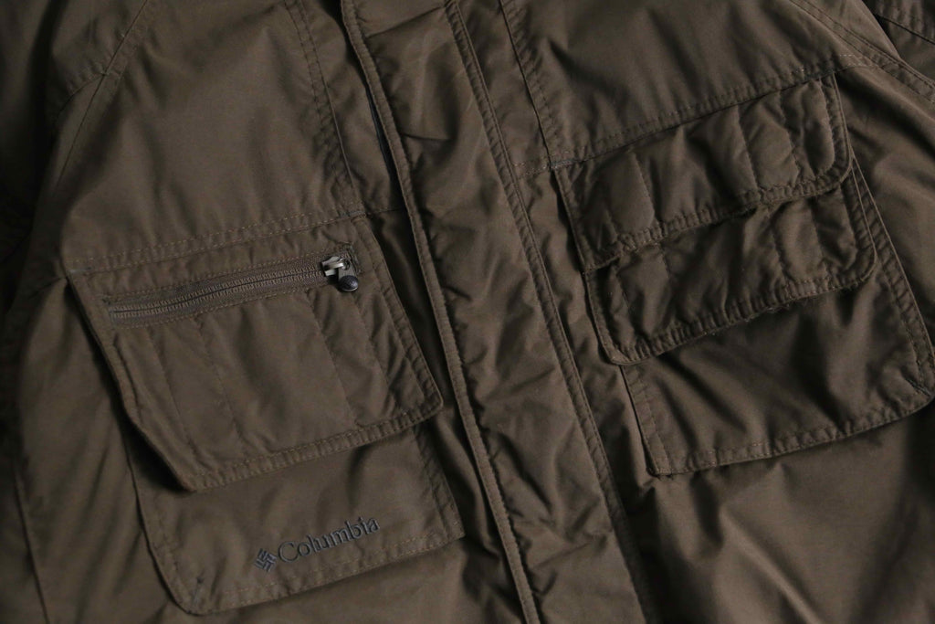 まるでハンティングジャケットの様なマルチポケットの機構を携える1990年代Columbiaの逸品。中綿入り、或いはライナー付き個体が殆どな中、ダウンを内包したColumbia古着でももう1発レアな個体。使いやすいブラウンカラー、サイズはXLでのご用意です。