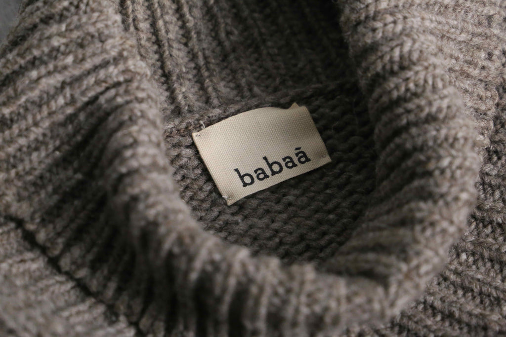 スペイン発のニットウェアブランド babaa(ババ) のウールタートルネックニット。ブランドは地産地消と持続可能なものづくりを軸に、スペイン国内での生産に徹底する拘りを持つブランド。原毛の調達から紡績、染色、縫製に至るまで、すべてを地元の職人と共に行うことで、天然素材の風合いと地域のクラフトマンシップを現代に伝えます。