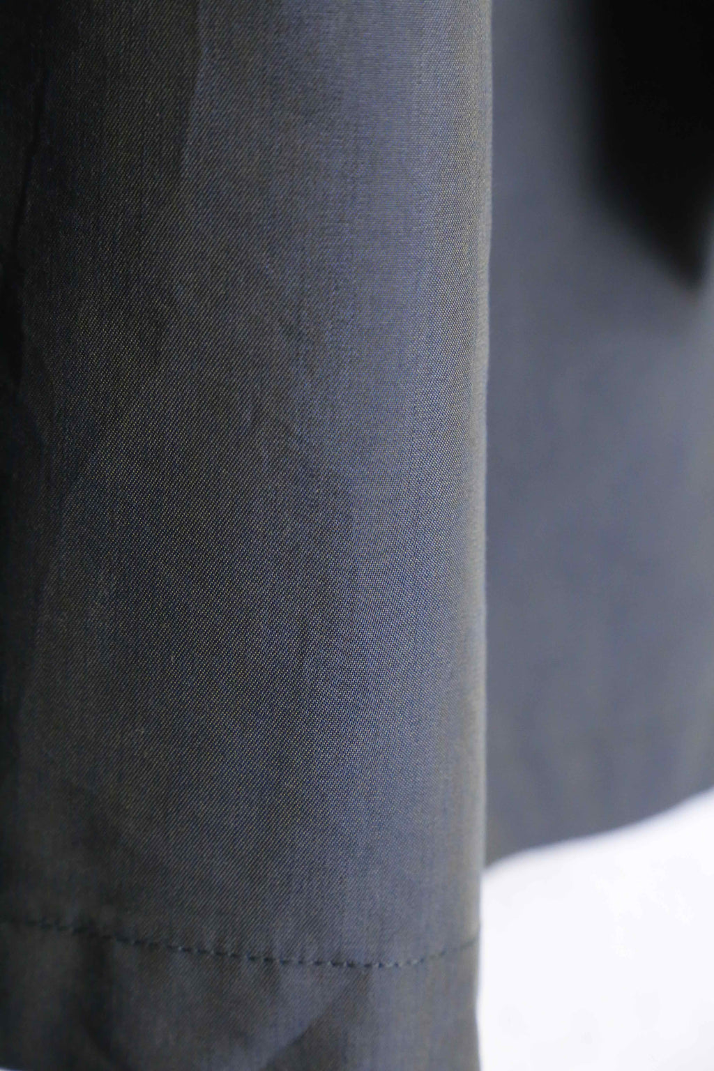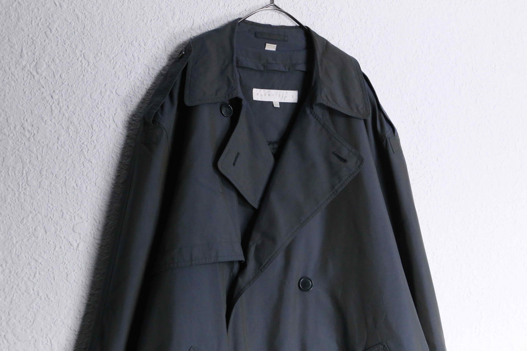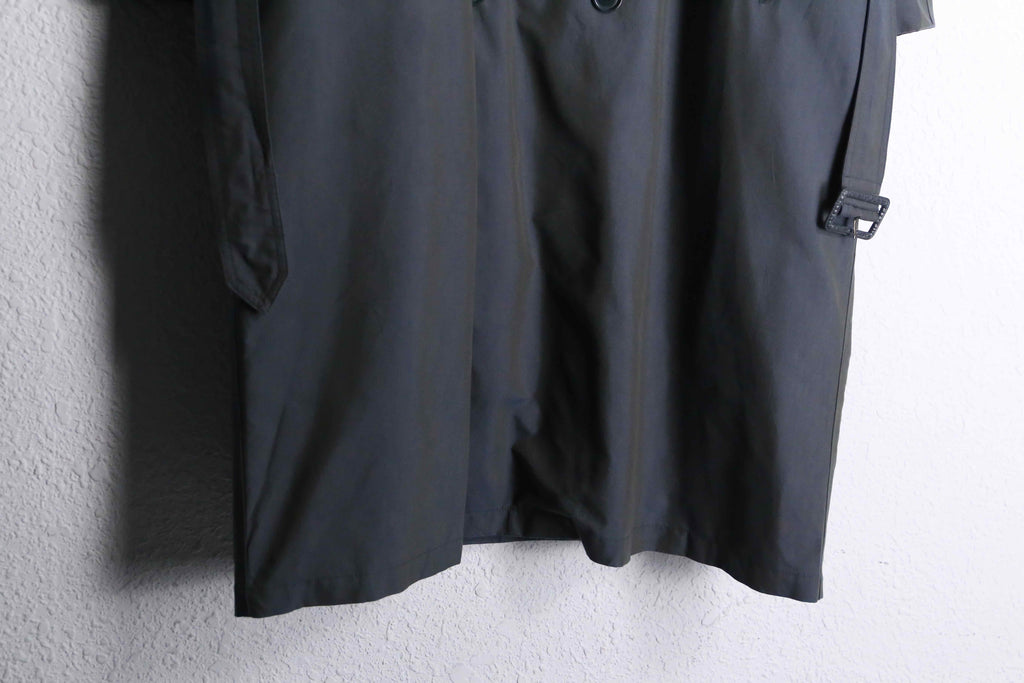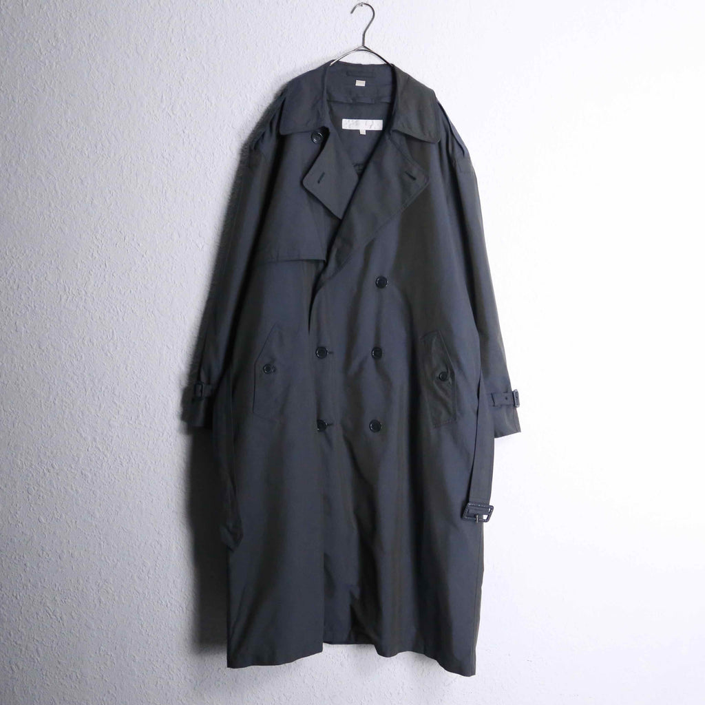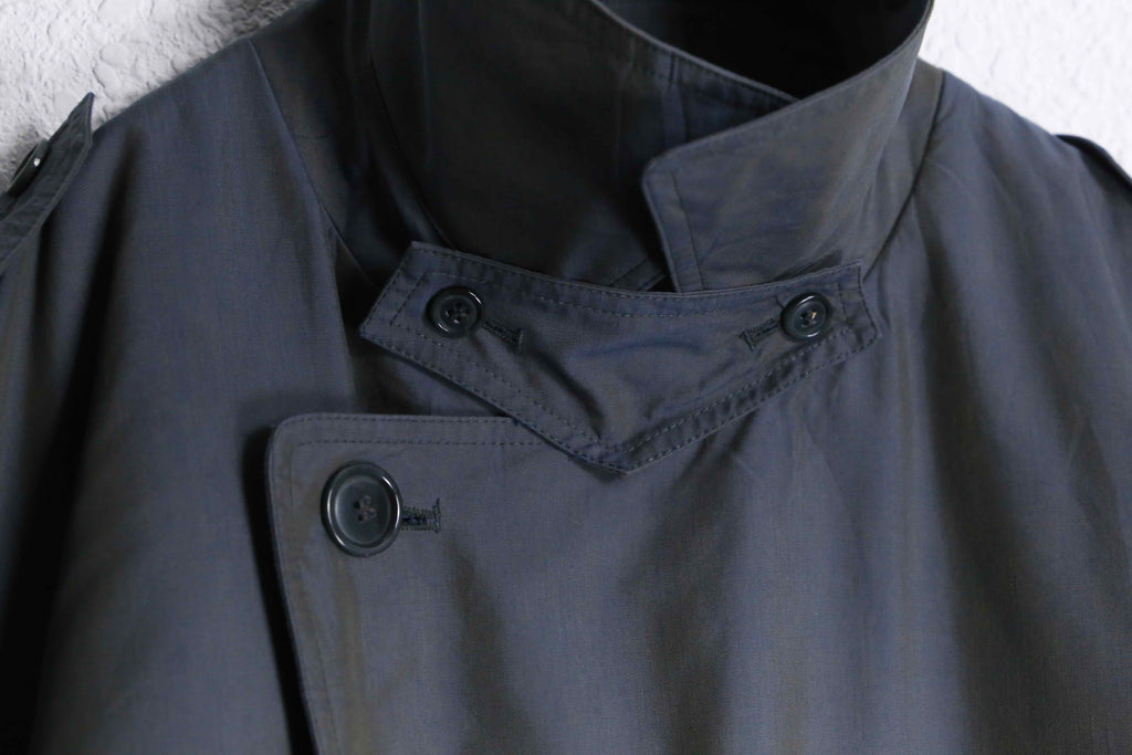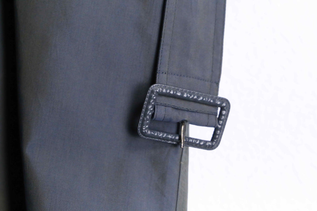 鈍く光る玉蟲の偏光生地。光の当たり具合で様々な表情に艶めく、非常に美しいファブリック。トレンチの形をしていますが、少し柔らかく起毛したスムース生地。ライナーとベルト付きの完品で状態も非常に良好です。身幅がたっぷりとあり、かのアルマーニを彷彿させるようなオーバーシルエットをお楽しみいただけるのもポイント。
