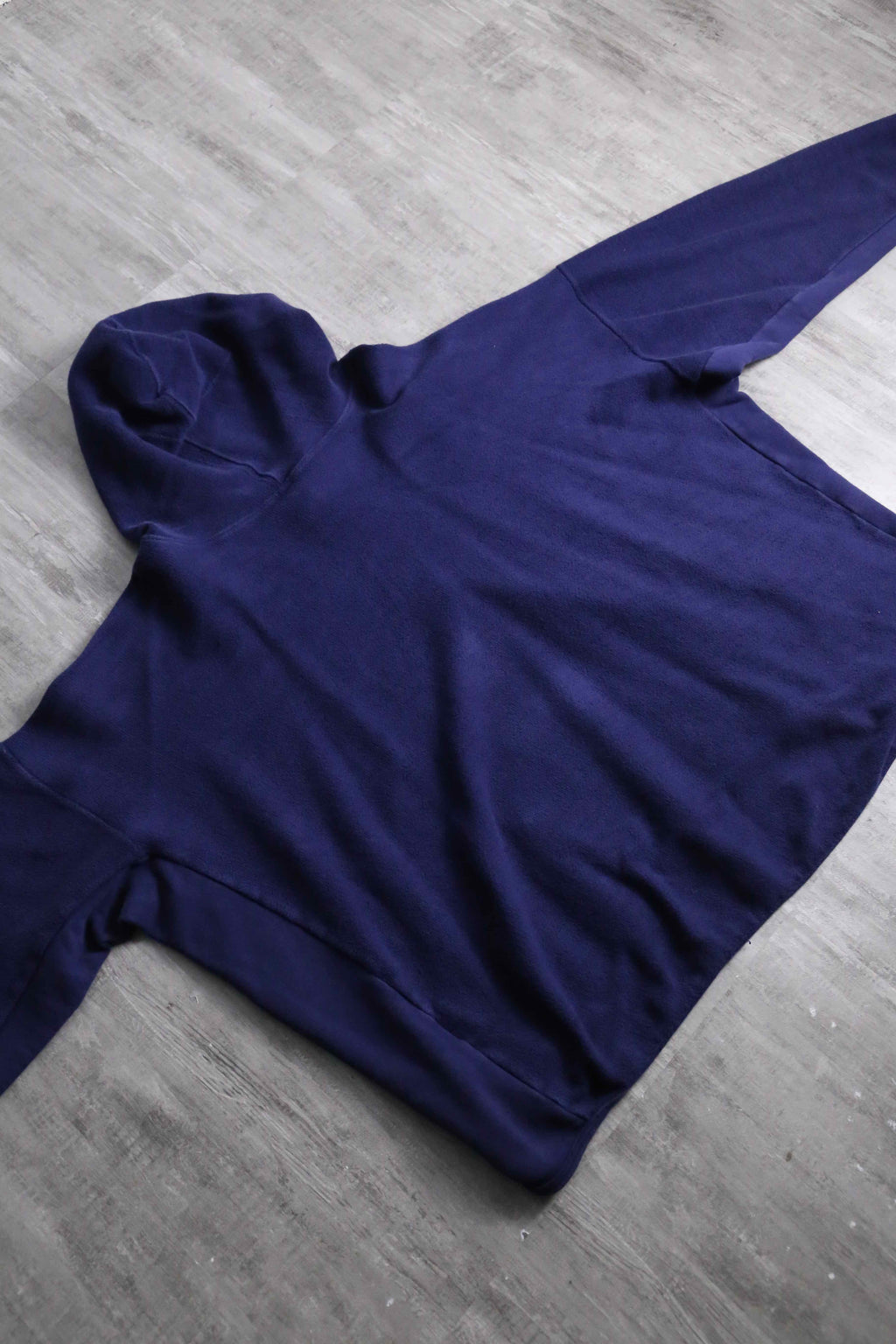 裏面はしなやかなコットンスウェット地。通常のスウェットを裏返したような構築でありながら、縫製やパターン設計は極めて精緻に計算されています。