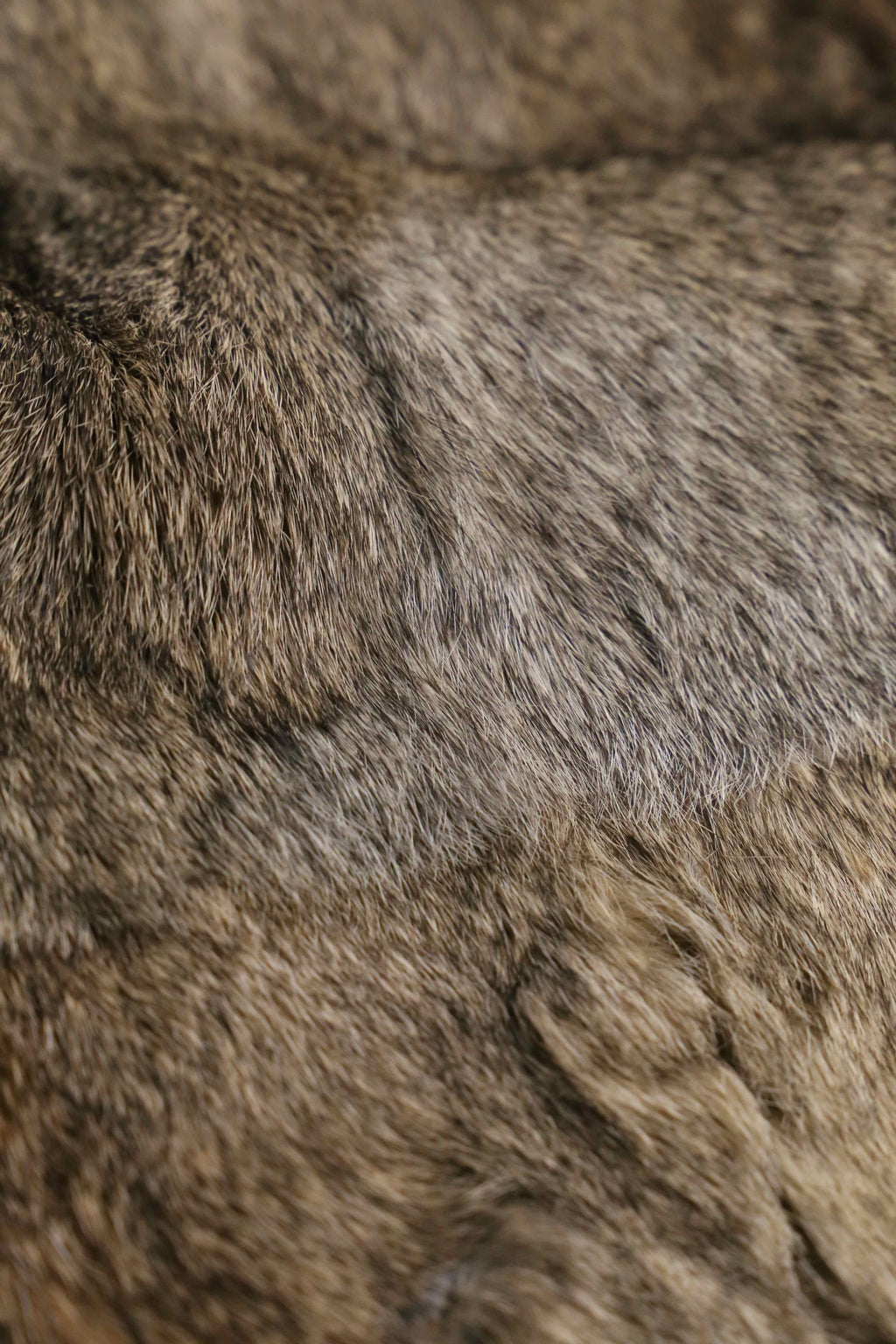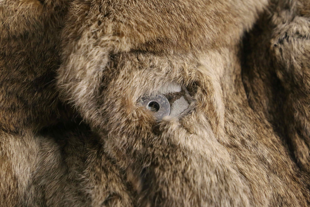 ボディ全体を覆う天然リアルラビットファーは、ムラ感のあるベージュトーンで構成され、上質な起毛感と軽さを両立。柔らかく密度のある毛並みは保温性に優れる一方で、独特の艶があり、非常にラグジュアリな質感。異常なまでに柔らかく気持ちの良い手触りで、ずっと撫でていたくなるような毛並みです。