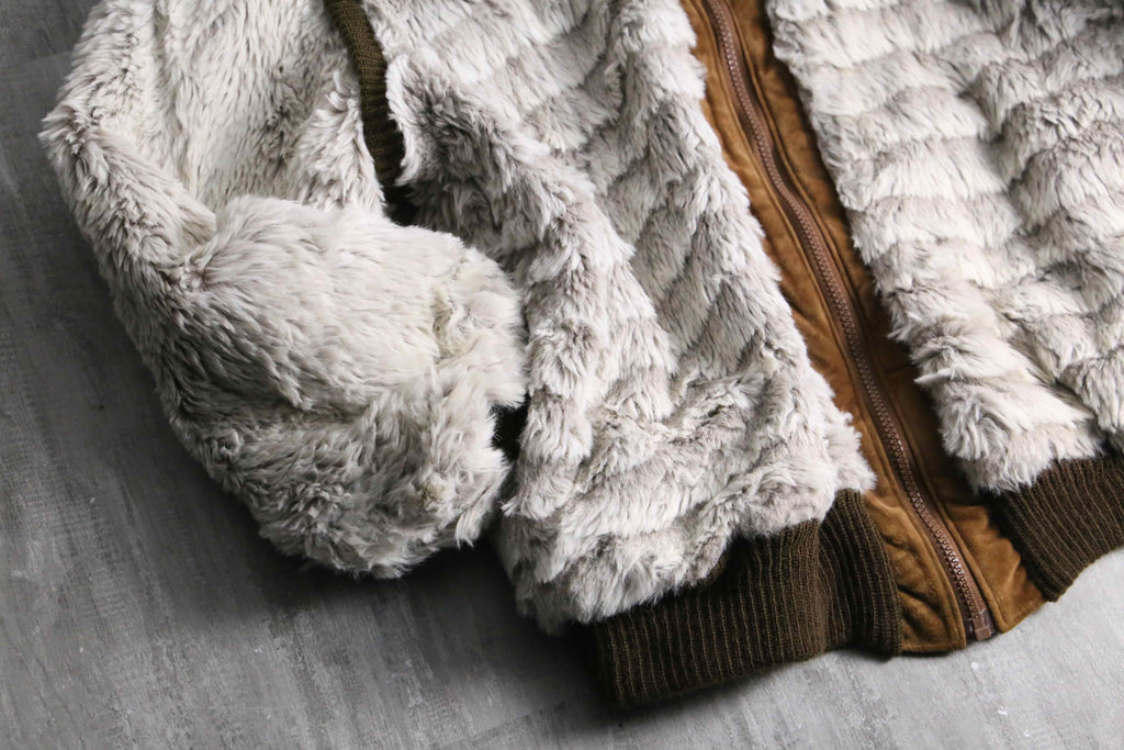 ファーアイテムは元来レディースなことが殆どであるからして、サイズ感やデザイン等も女性的な物が殆ど。しかしこちら、US製かつ80年代頃のヴィンテージということもあり、ヴィンテージらしい切り替えのデザインと、ブルゾンタイプのジップアップなことによりメンズも余裕で着られそうなデザインが魅力的です。