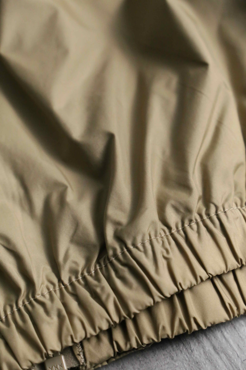 幅広短丈の昨今需要の高いシルエット。撥水にも優れたナイロン100%シェル、ベンチレーションにより高い透湿性を誇ります。急な雨風に対応できるようフード付き、持ち運びに便利なパッカブル仕様と、機能美溢れる逸品。