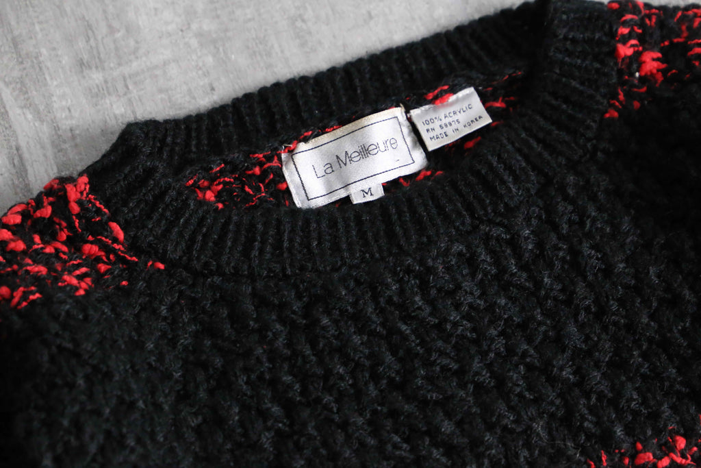 ローゲージのアクリル100%ニット。保温力はウールやカシミヤには若干劣りますが、これに関してはデザインで選んで良いでしょう。古着のニットって結構、古着っぽくなってしまいますがこれならラグジュアリーに着ていただけるかと思います。おすすめの1着です。