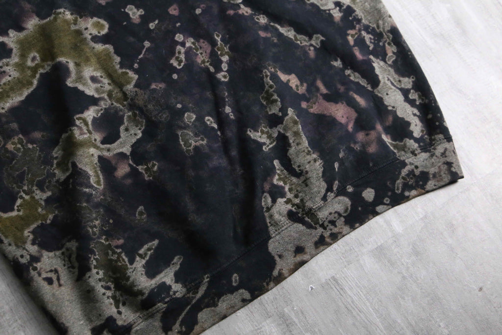 サイズ表記XLのルーズなサイズ感。退廃的な柄感が非常に良い塩梅。1枚で着るのはもとより、今からの時期はインナーへの採用が内定しそうです。無地だとかなりカジュアルになってしまいますが、これならお洒落着としてヘヴィユースできそうです。