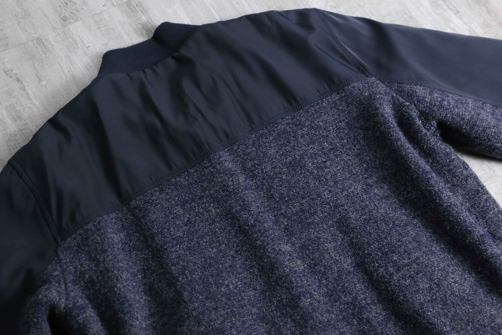 トルコ発カジュアルブランドの異素材切り替えが魅力的なブルゾン。肩からヨーク、アームに掛けてナイロンに切り替わったハイテクさと街に馴染む洗練された佇まいが魅力の1着。