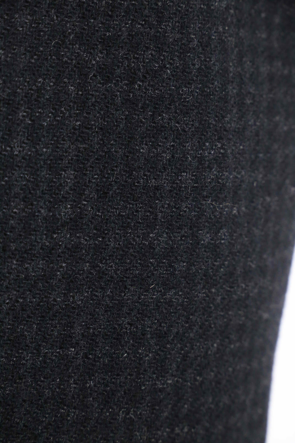 一見無地に見えるウール地は、光の角度によってうっすらとガンクラブチェックが浮かぶという、当時の高級紳士服にだけ許された特殊織り。現在の生産では再現が難しいほど密度が高く、ゴワッとした重厚なタッチと、深い奥行きを持った陰影がこの年代のウールらしさを物語ります。