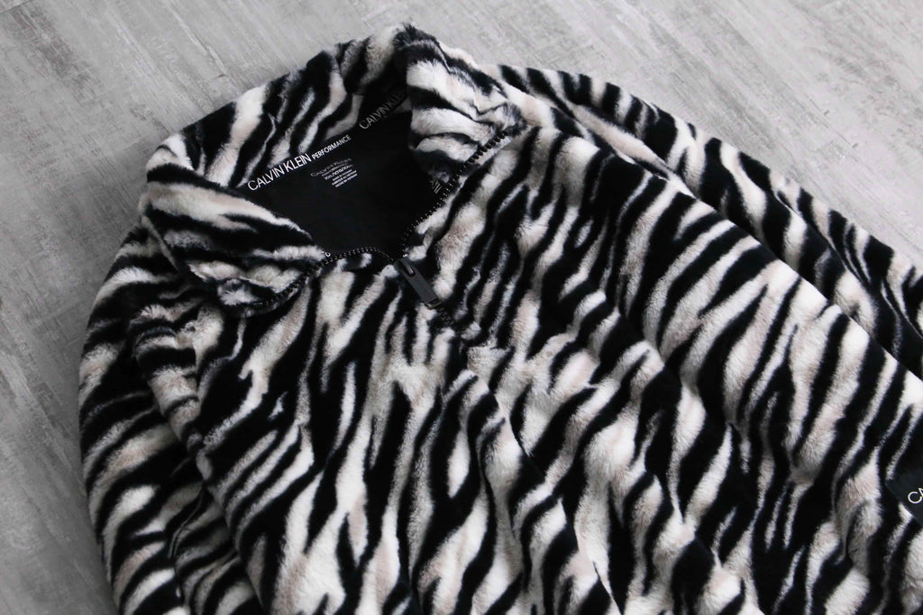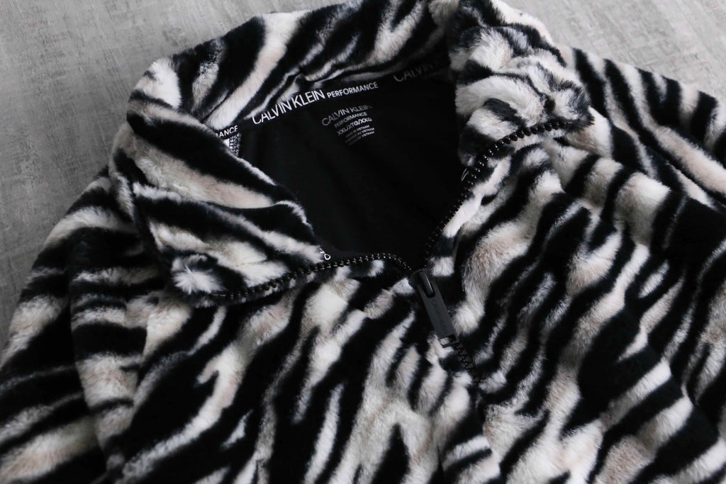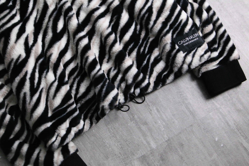 近年のCKのアクティヴ、スポーツウェアライン"PERFORMANCE"のゼブラ柄ファーのハーフジッププルオーバー。スポーツラインでさえお洒落、流石カルバンクラインです。