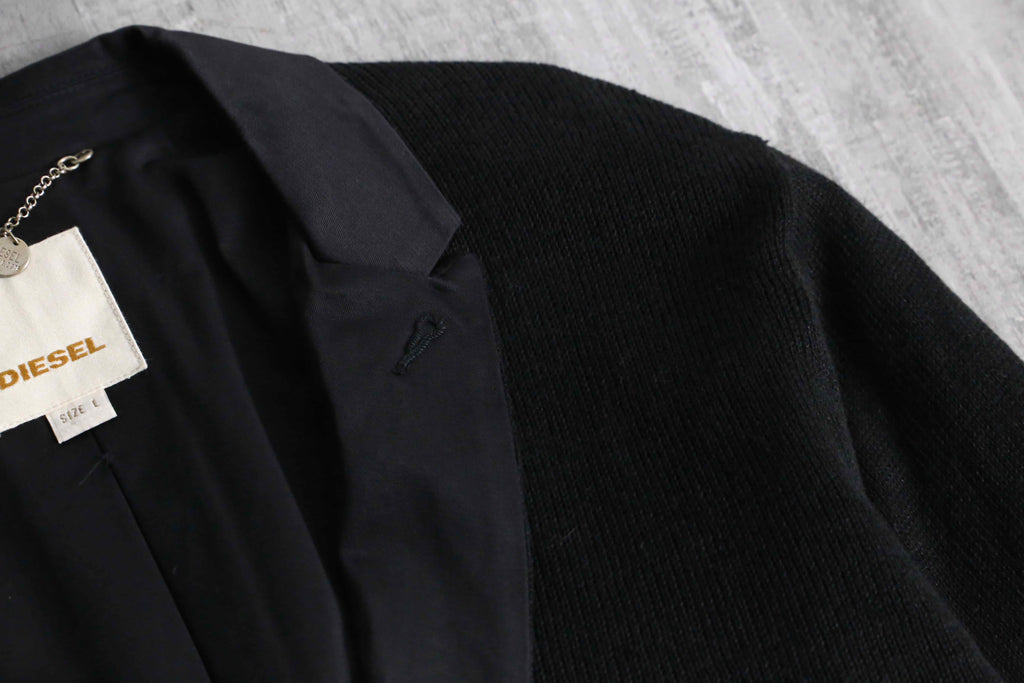 イタリアの美学が息づくDIESELの無骨さと繊細さが共存するハイブリッドニットジャケットの入荷。