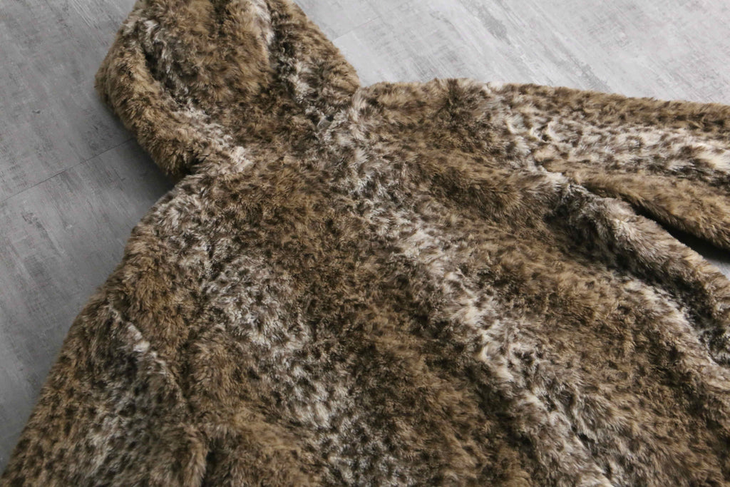 レオパード柄を上品かつ都会的に昇華させたフェイクファーのレオパード柄フードジャケットのご紹介。リアルファーにも劣らない優雅な陰影と荒々しさ、モードブランドのような繊細さを兼ね備えています。