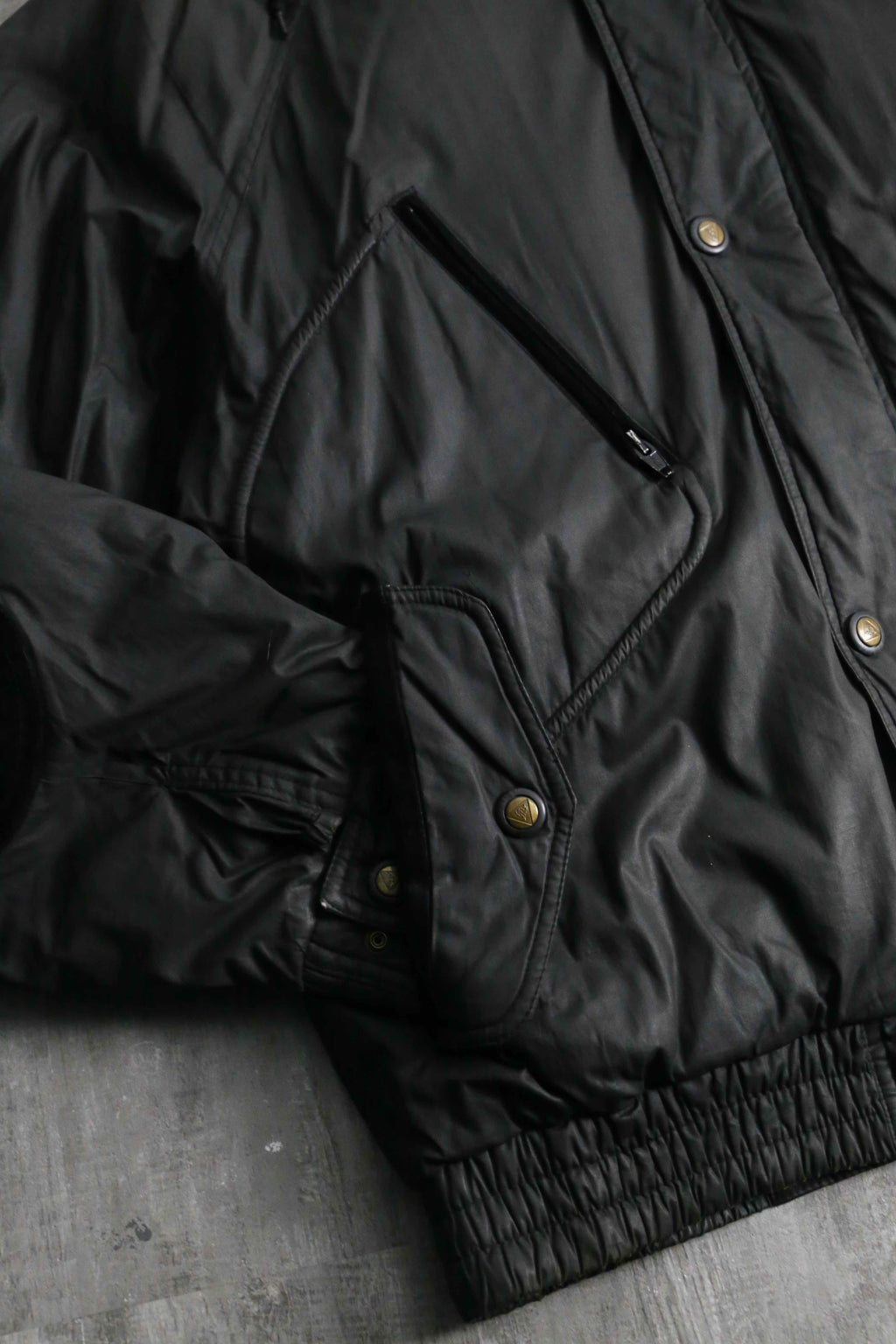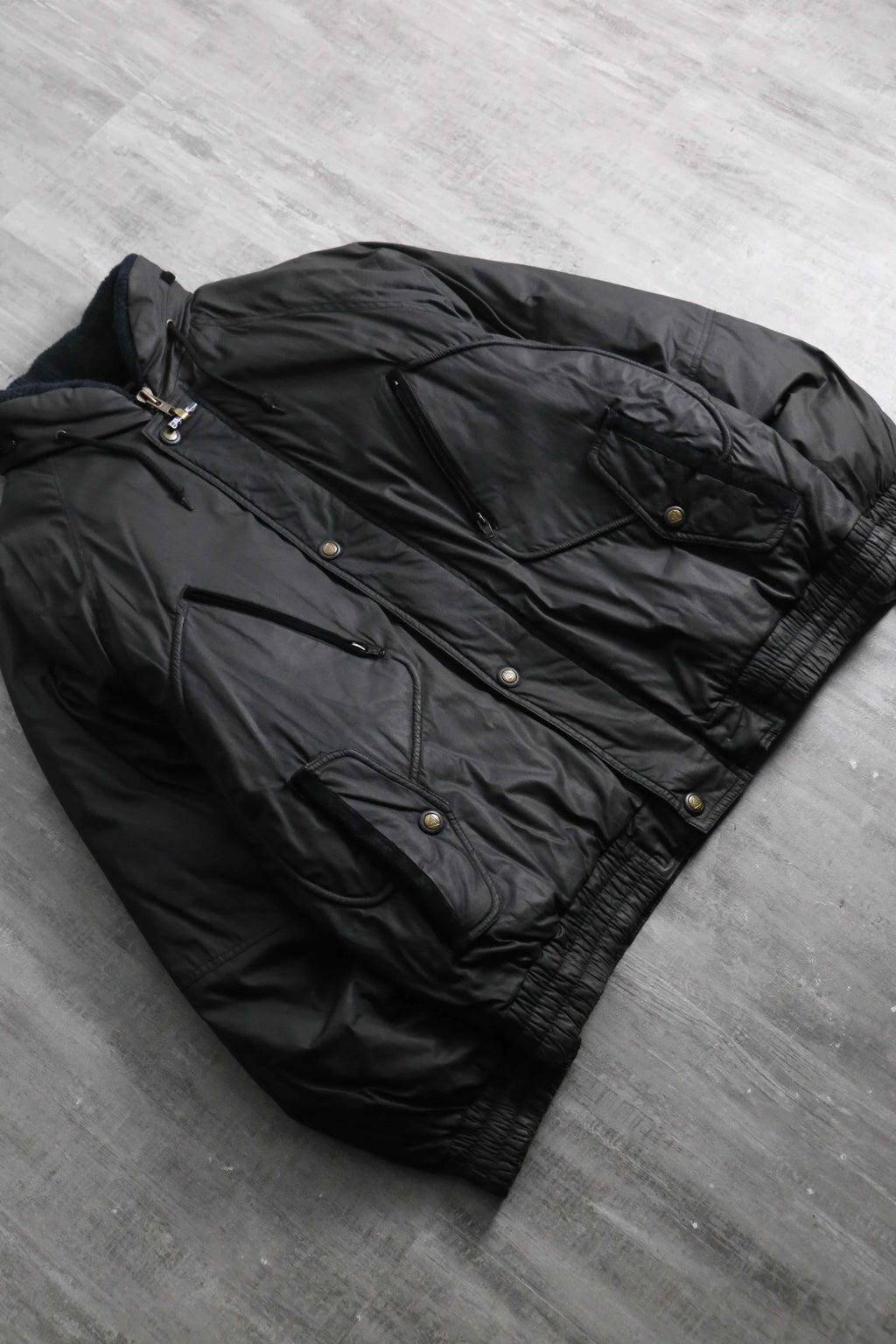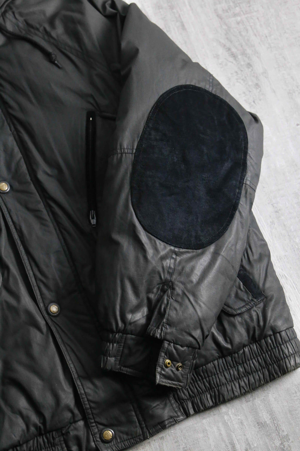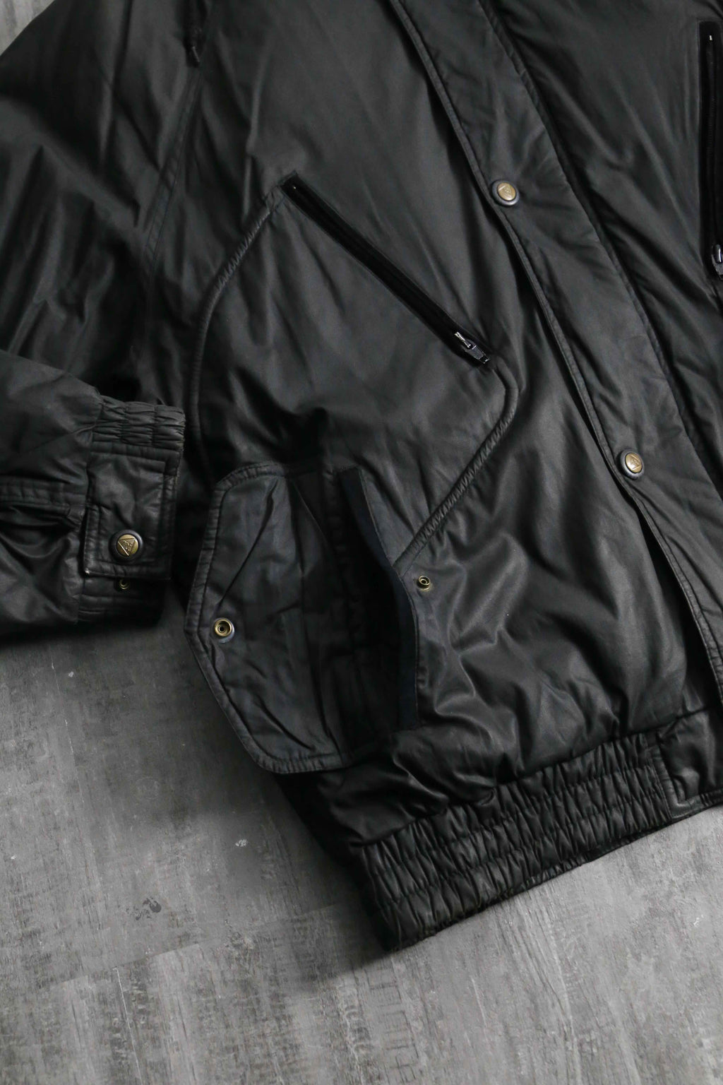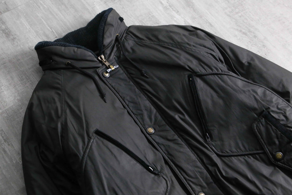 また、随所に配されたブランドロゴ入りのスナップボタンや、クラシカルなアクセントとなるスエードのエルボーパッチ、機能的な大型のハの字型チェストポケットなど、細部まで意匠が凝らされたデザインが特徴。90年代特有のゆったりとしたワイドなシルエットは、現在のストリートシーンやテック系のスタイリングにも非常に相性が良く、機能美とヴィンテージの風合いを同時に楽しめる希少な1着です。